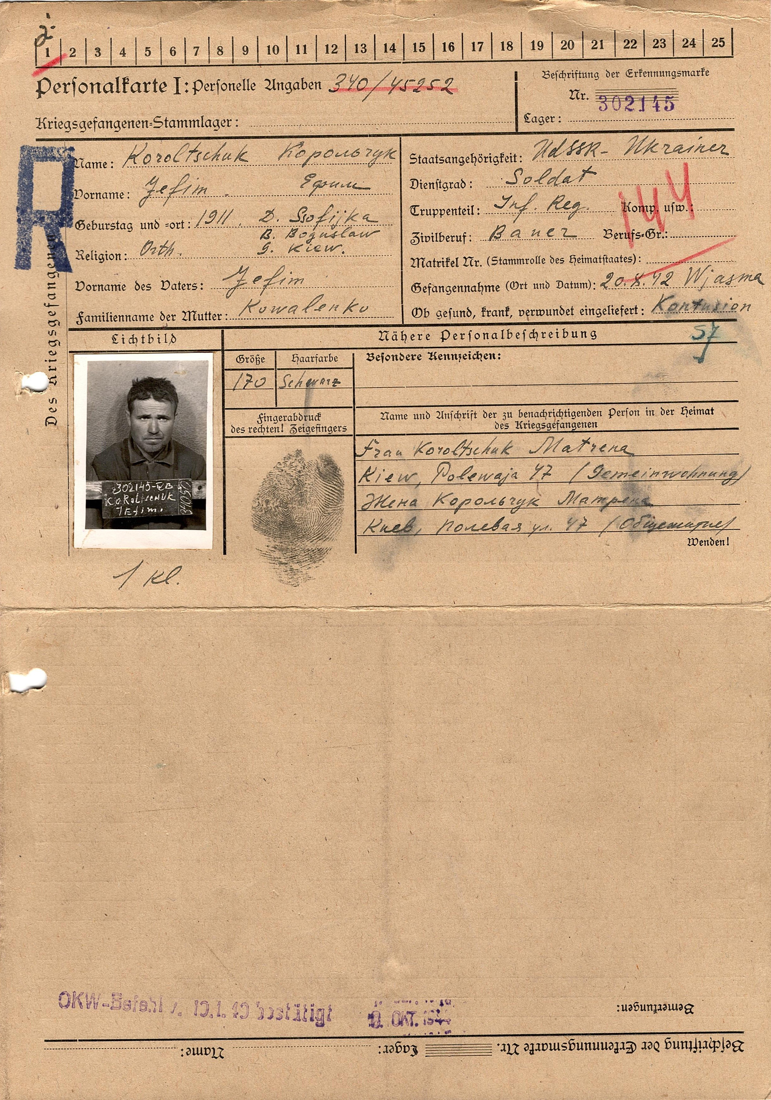 Военнопленные, трофейные карточки. Киевская обл.