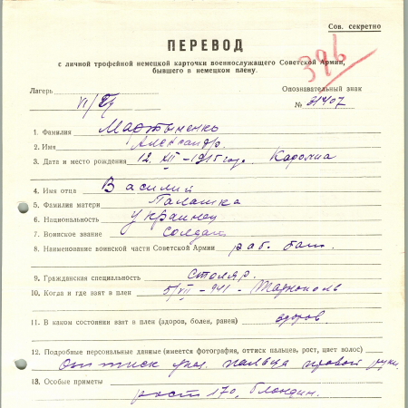 Военнопленные, трофейные карточки. Киевская обл.