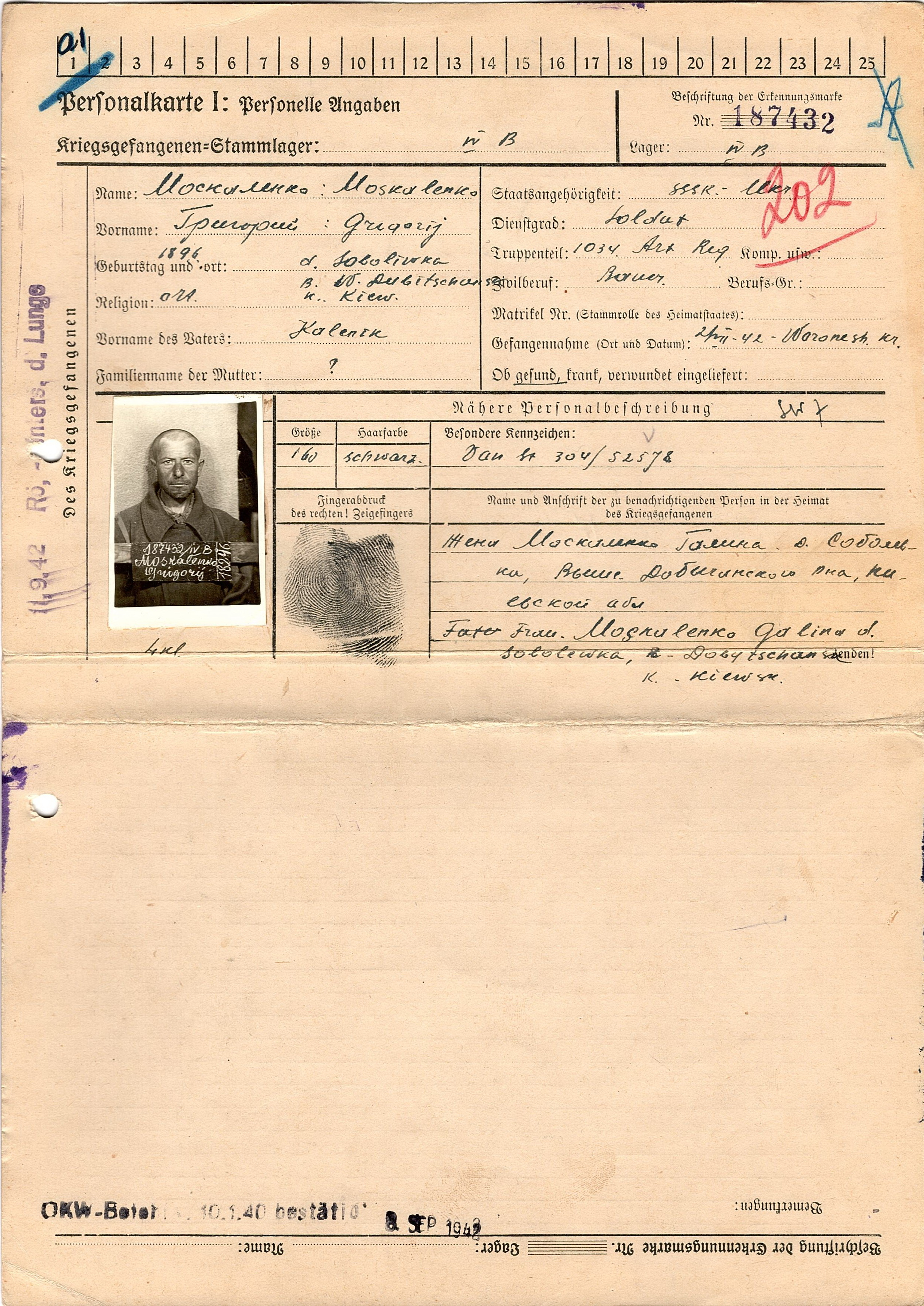 Военнопленные, трофейные карточки. Киевская обл.