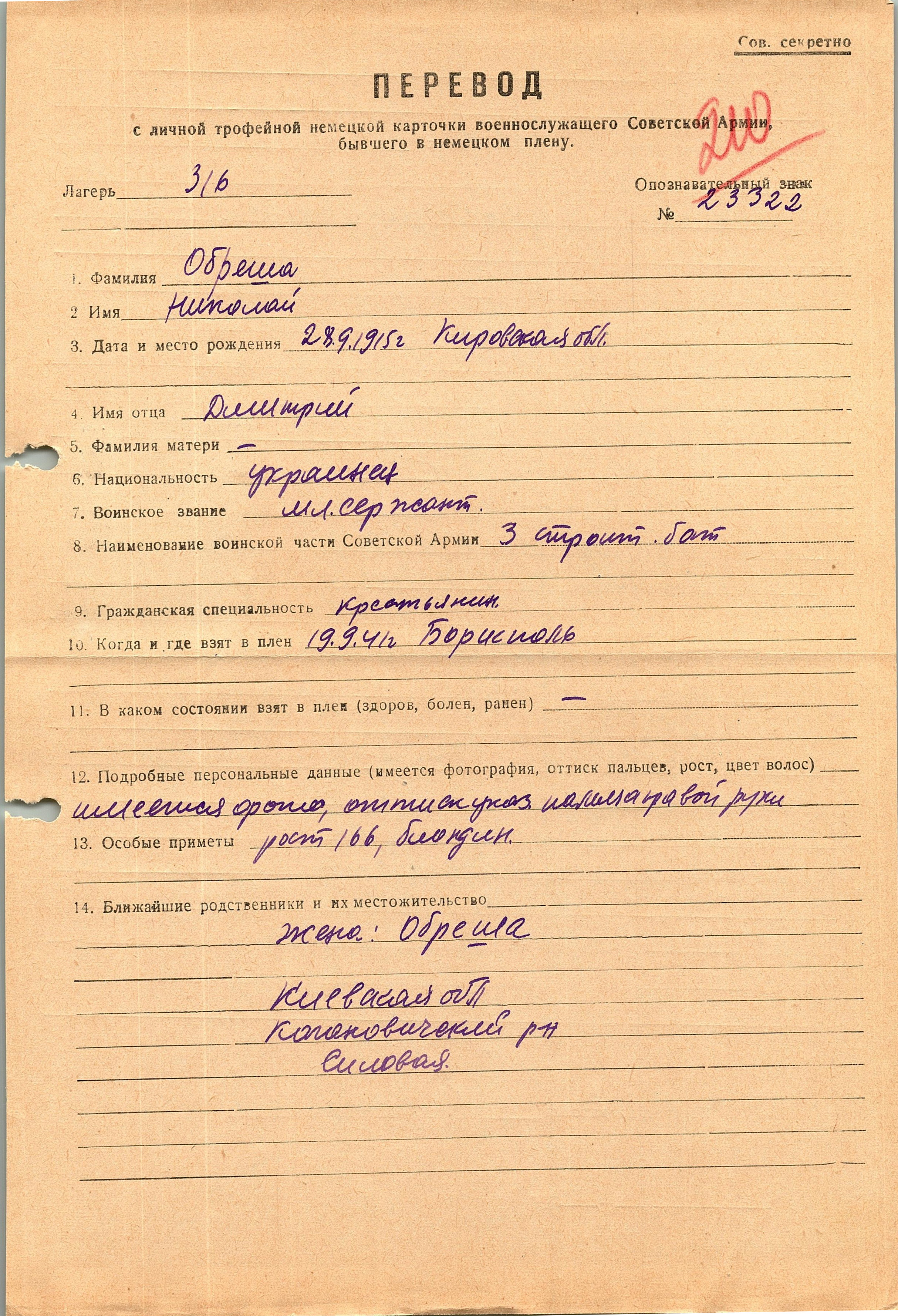 Военнопленные, трофейные карточки. Киевская обл.
