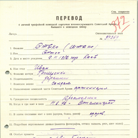 Военнопленные, трофейные карточки. Киевская обл.
