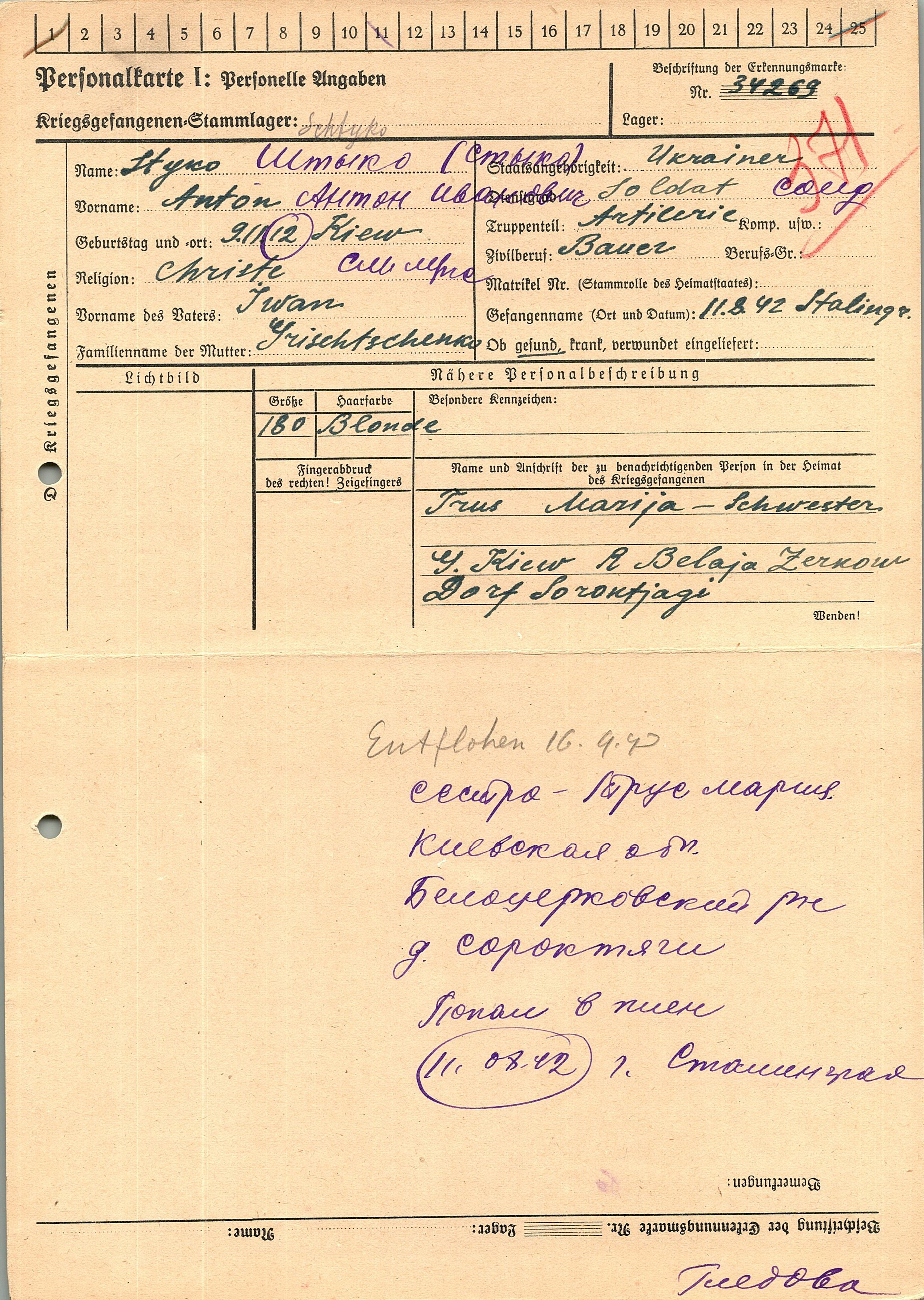 Военнопленные, трофейные карточки. Киевская обл.