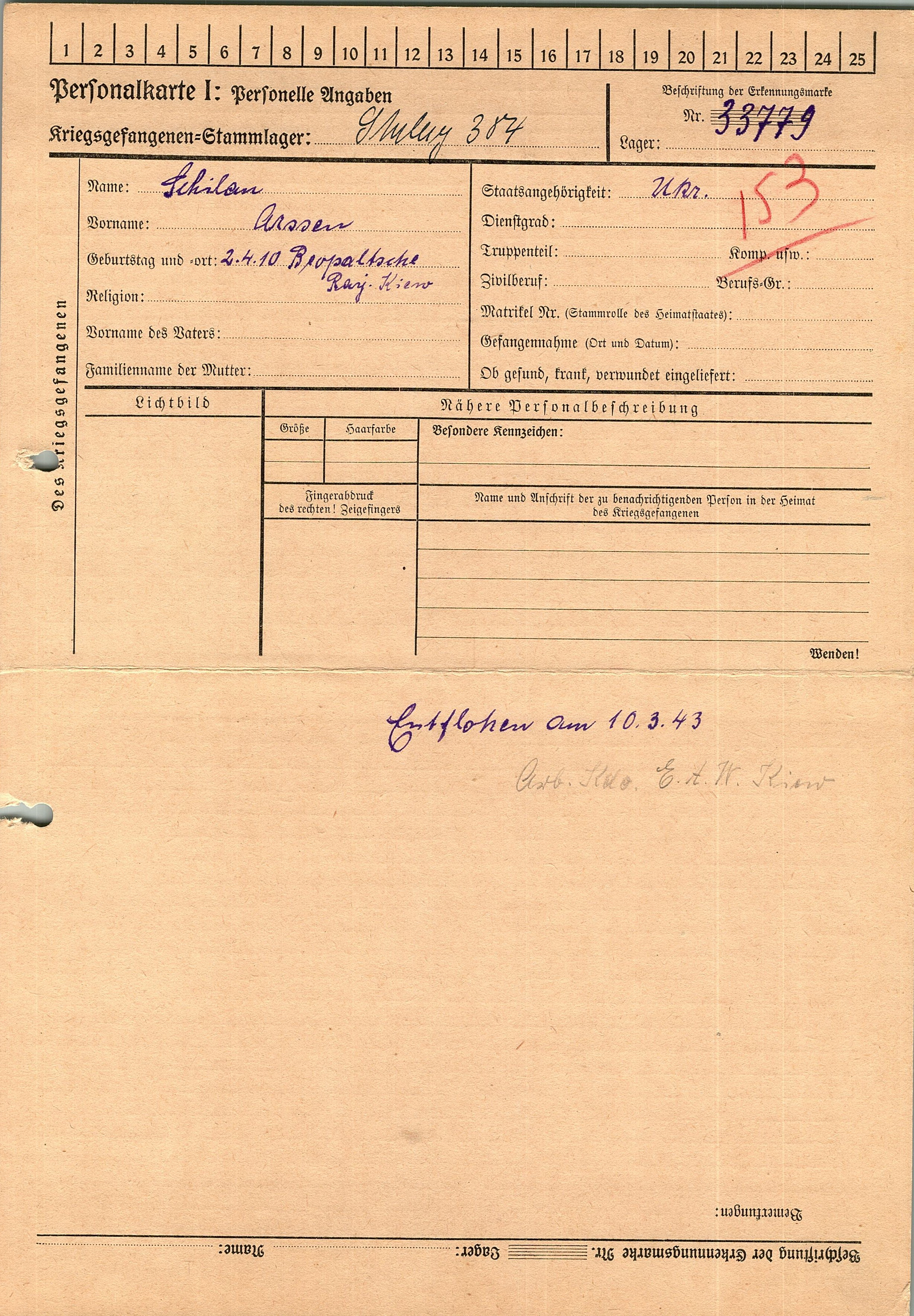 Военнопленные, трофейные карточки. Киевская обл.
