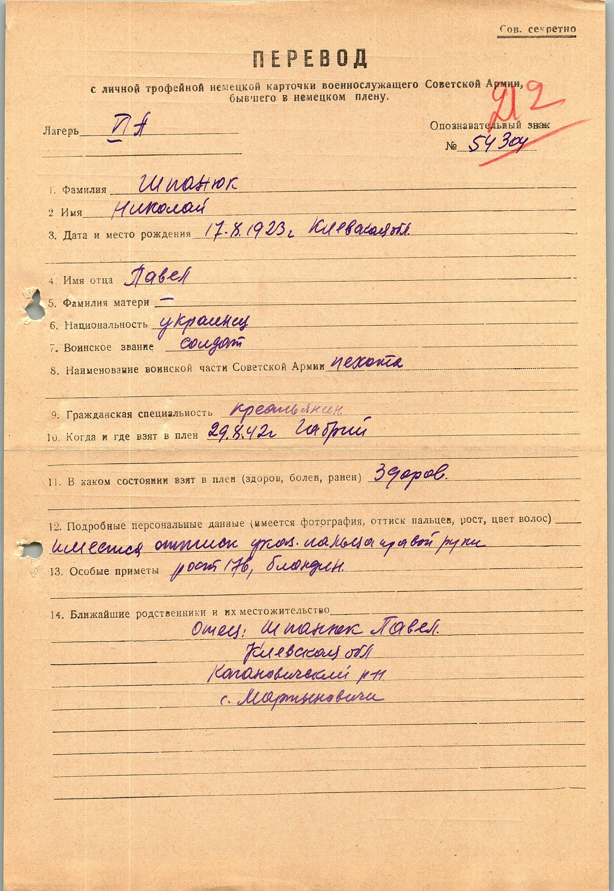 Военнопленные, трофейные карточки. Киевская обл.