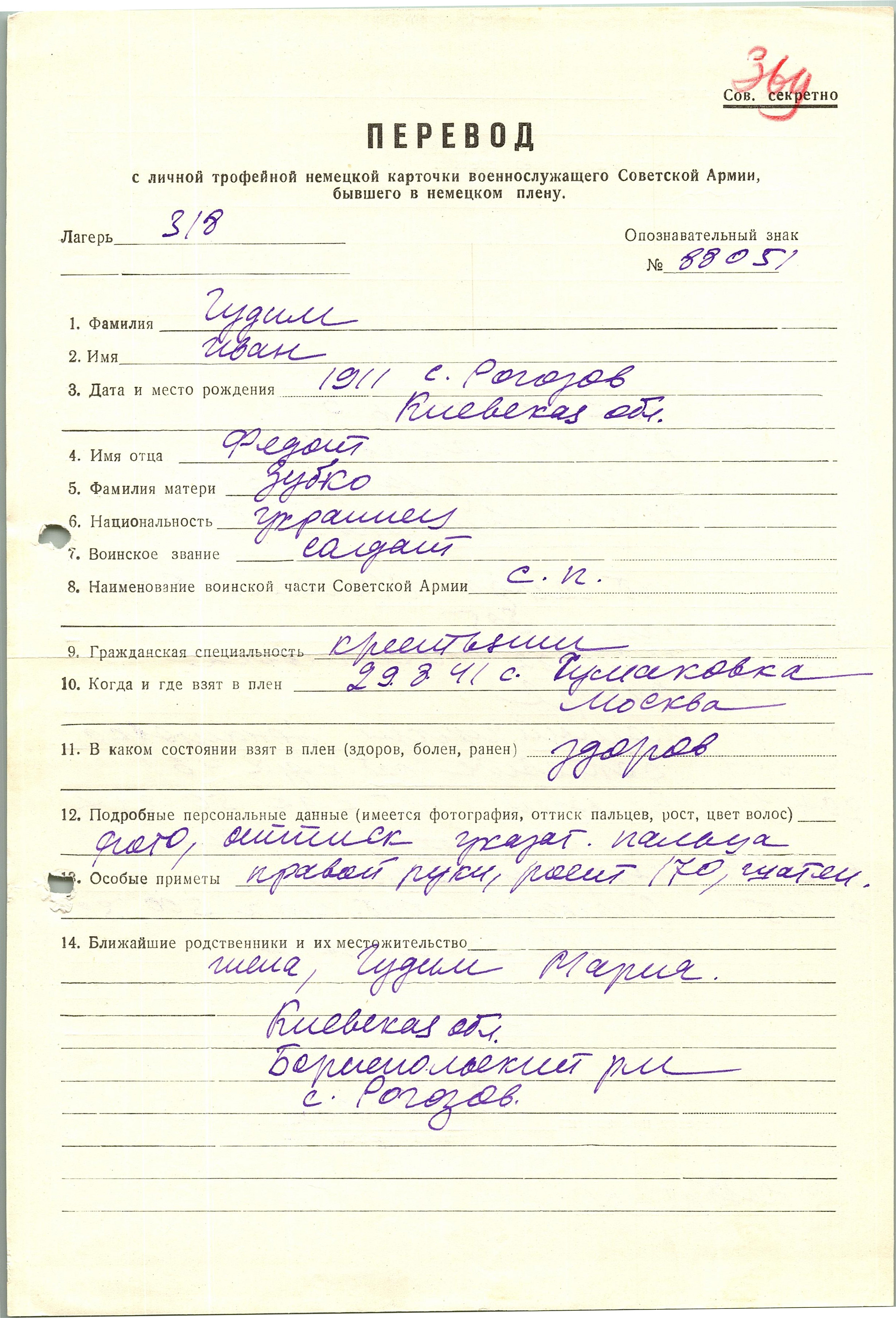 Военнопленные, трофейные карточки. Киевская обл.