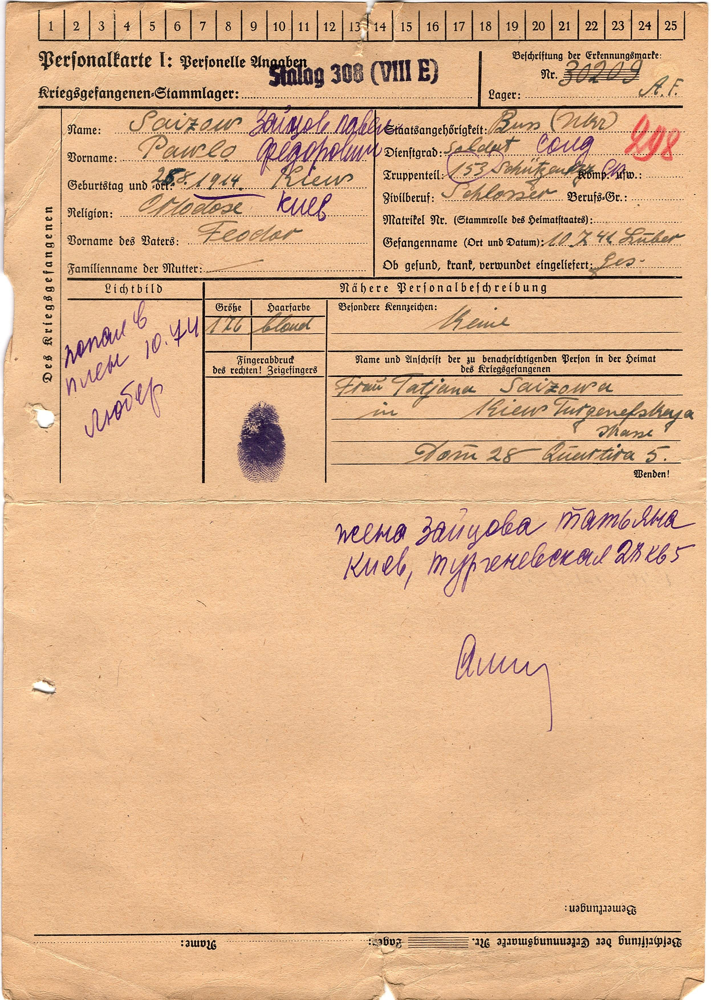 Военнопленные, трофейные карточки. Киевская обл.