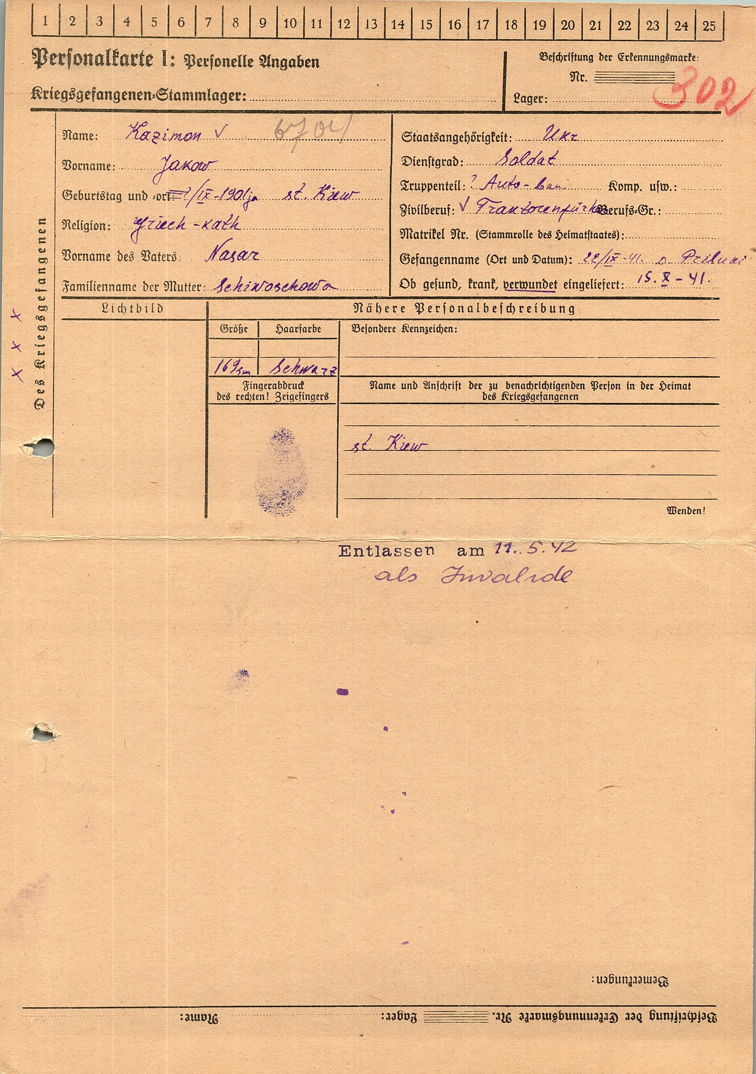 Военнопленные, трофейные карточки. Киевская обл.