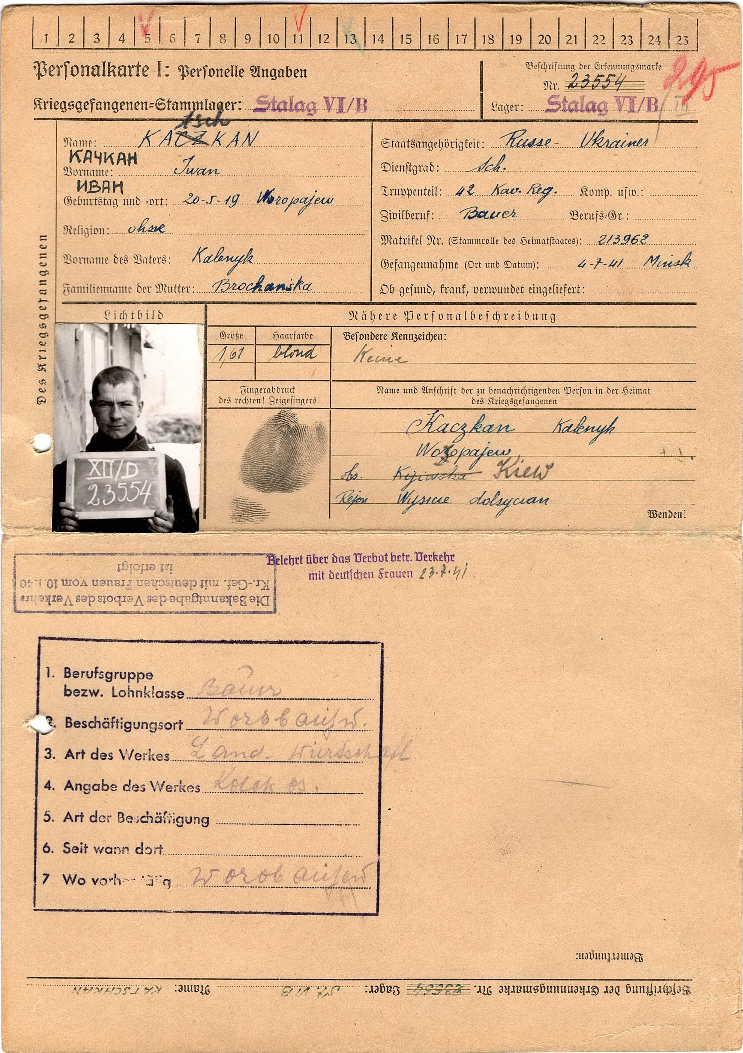 Военнопленные, трофейные карточки. Киевская обл.
