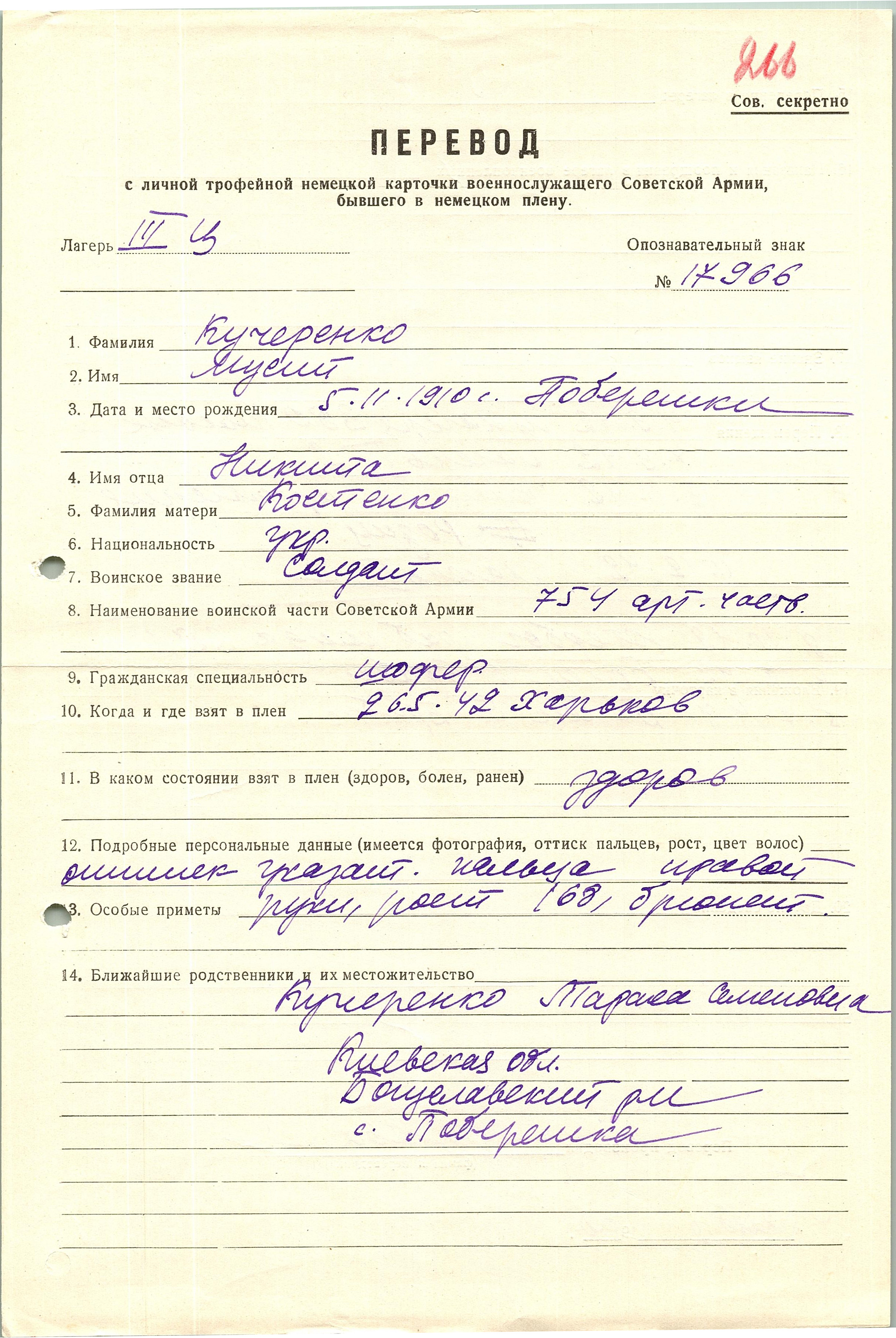 Военнопленные, трофейные карточки. Киевская обл.