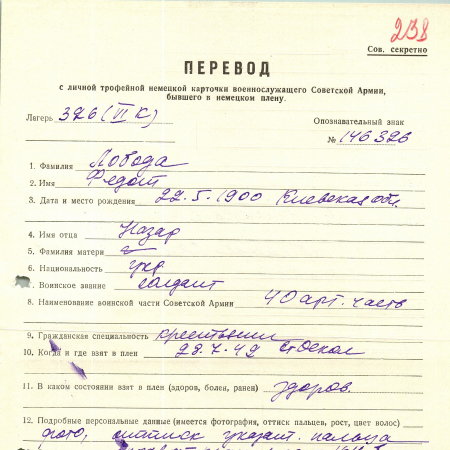 Военнопленные, трофейные карточки. Киевская обл.