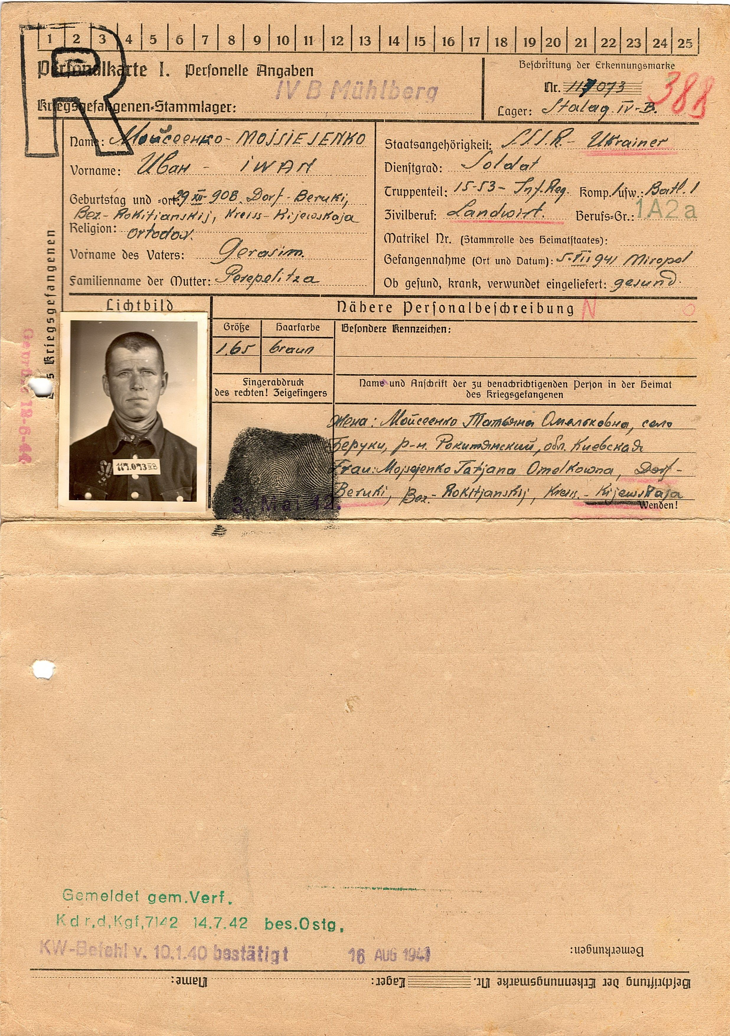 Военнопленные, трофейные карточки. Киевская обл.