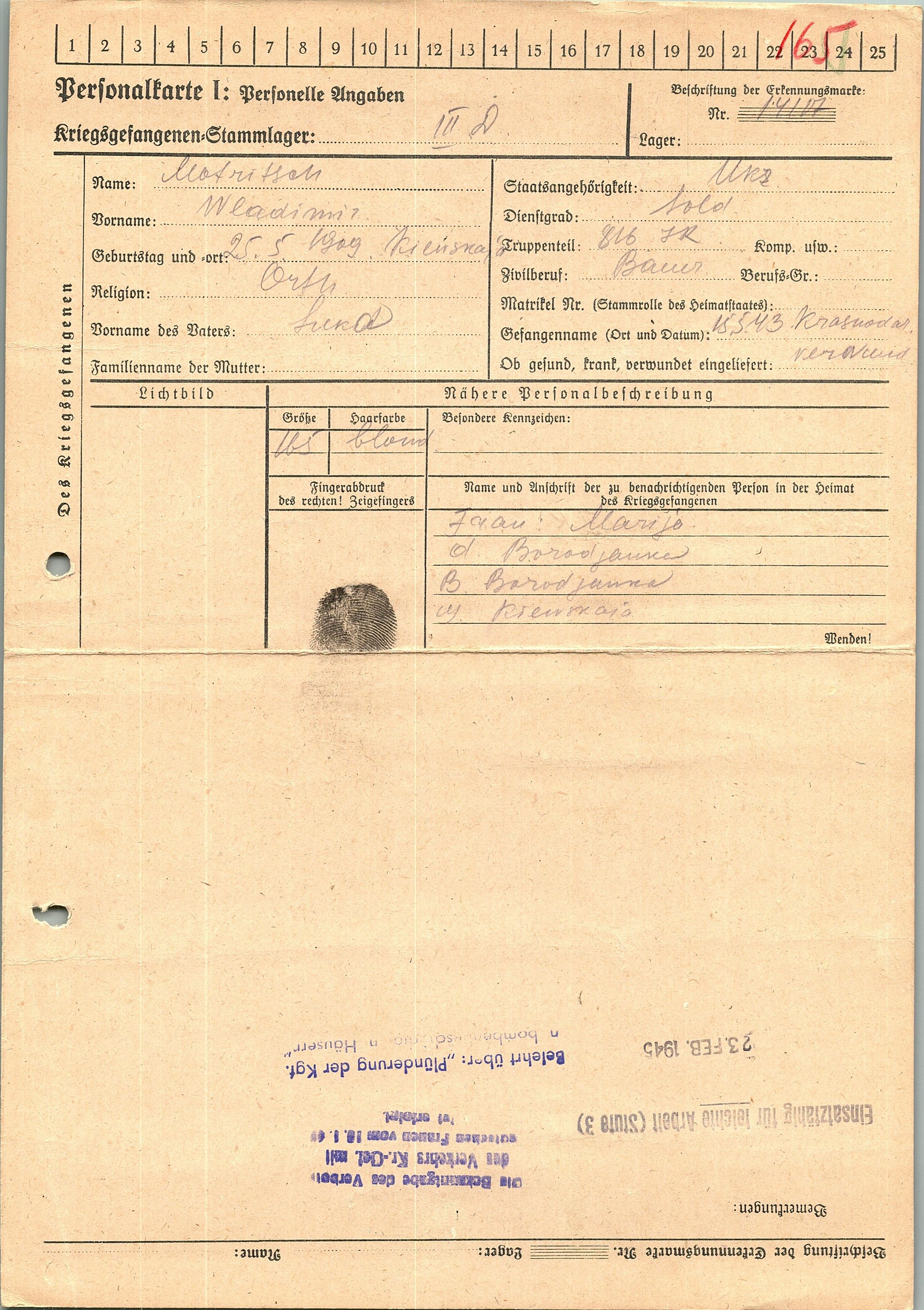 Военнопленные, трофейные карточки. Киевская обл.