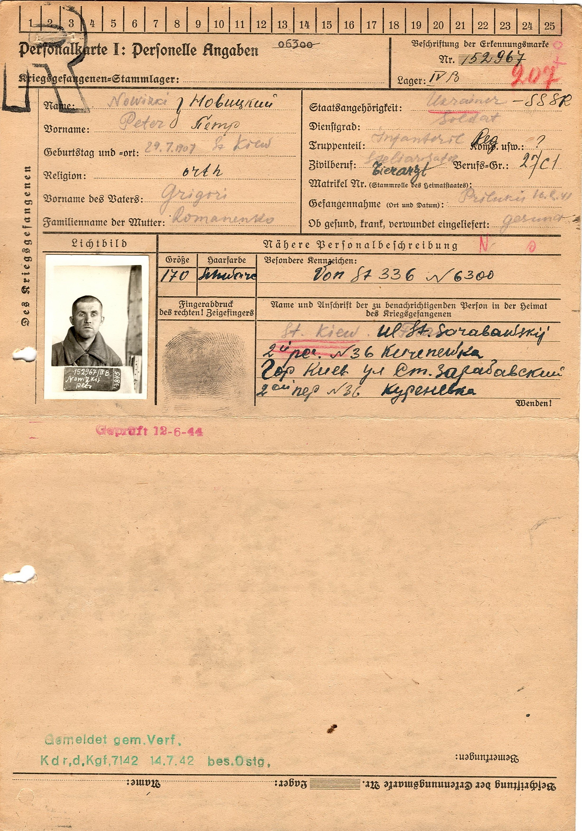 Военнопленные, трофейные карточки. Киевская обл.