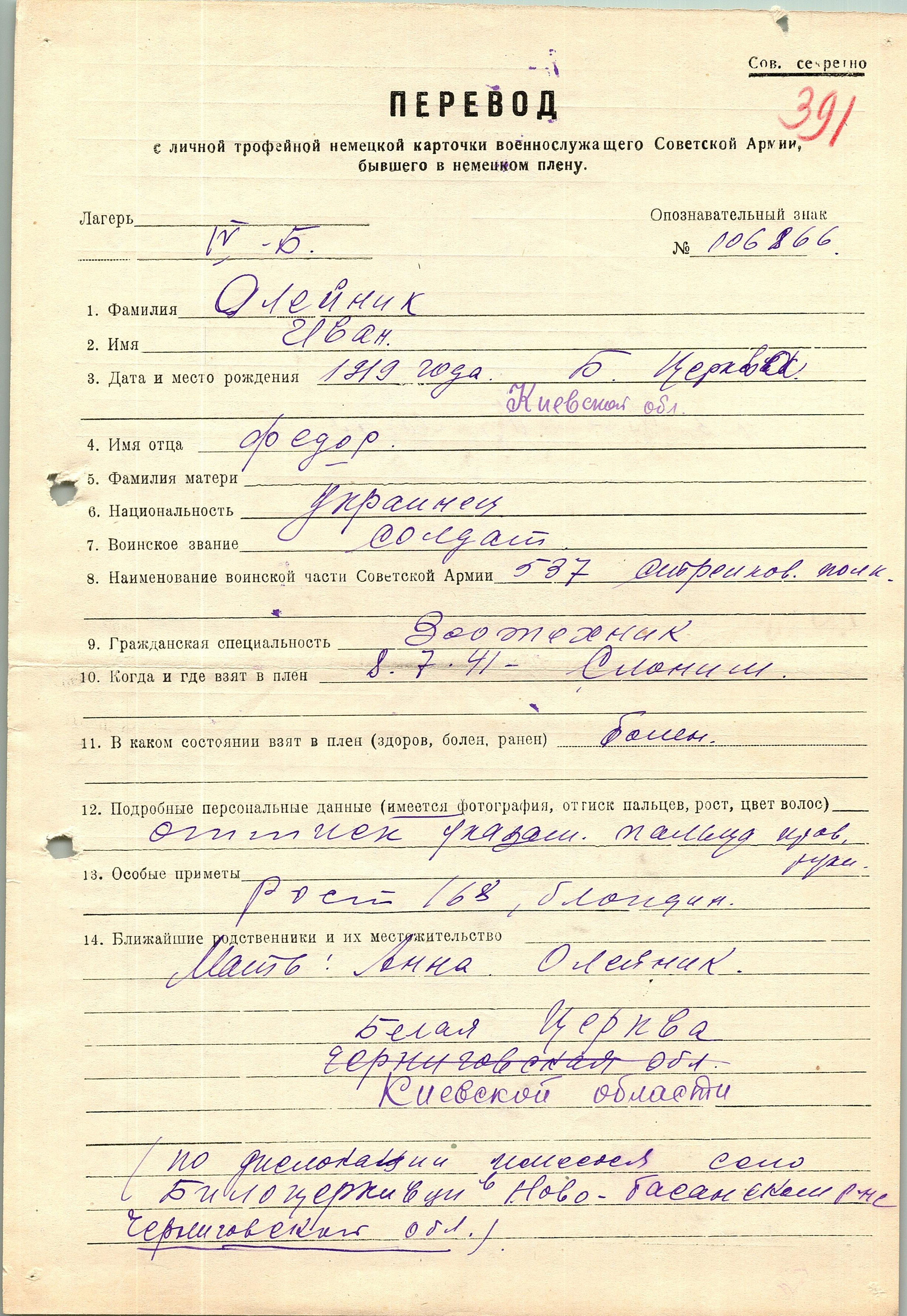 Военнопленные, трофейные карточки. Киевская обл.