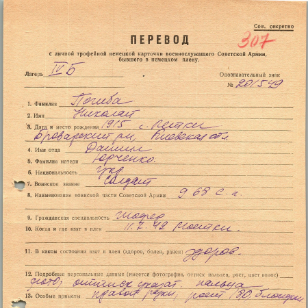 Военнопленные, трофейные карточки. Киевская обл.
