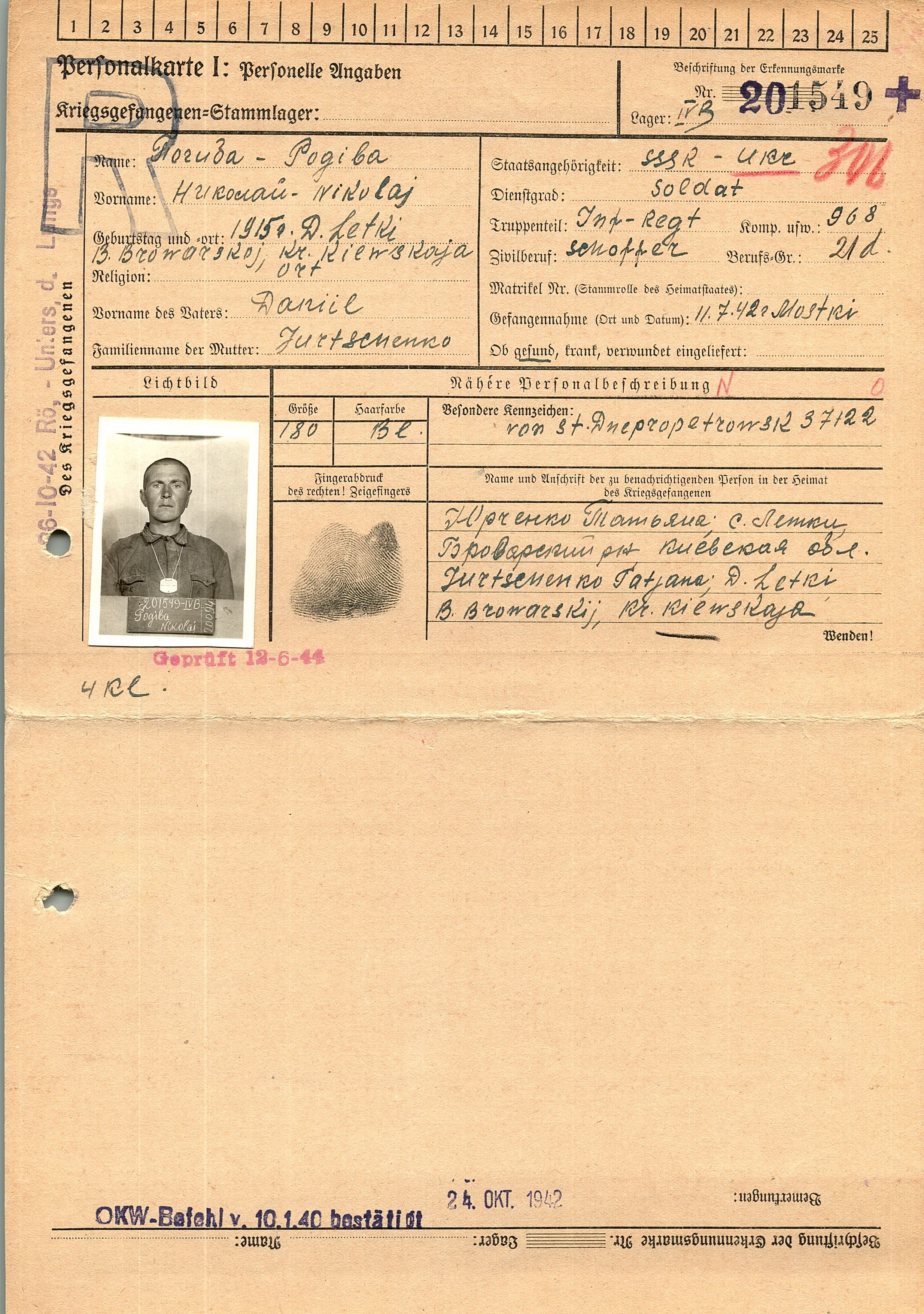 Военнопленные, трофейные карточки. Киевская обл.