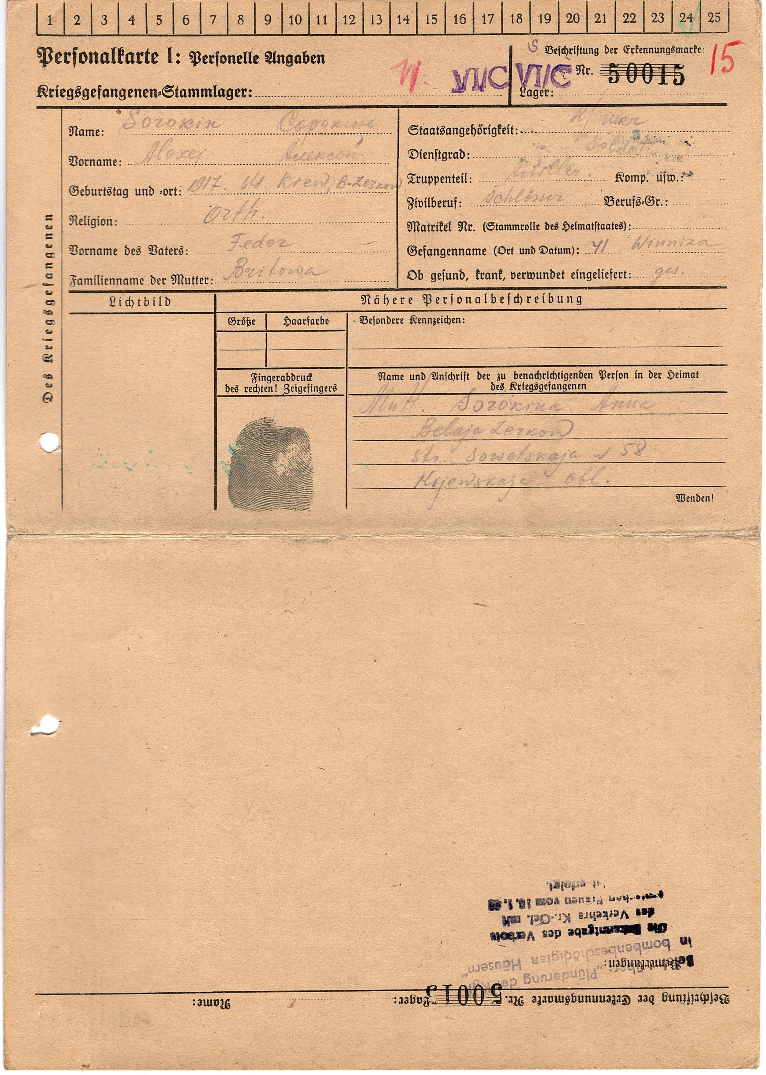 Военнопленные, трофейные карточки. Киевская обл.