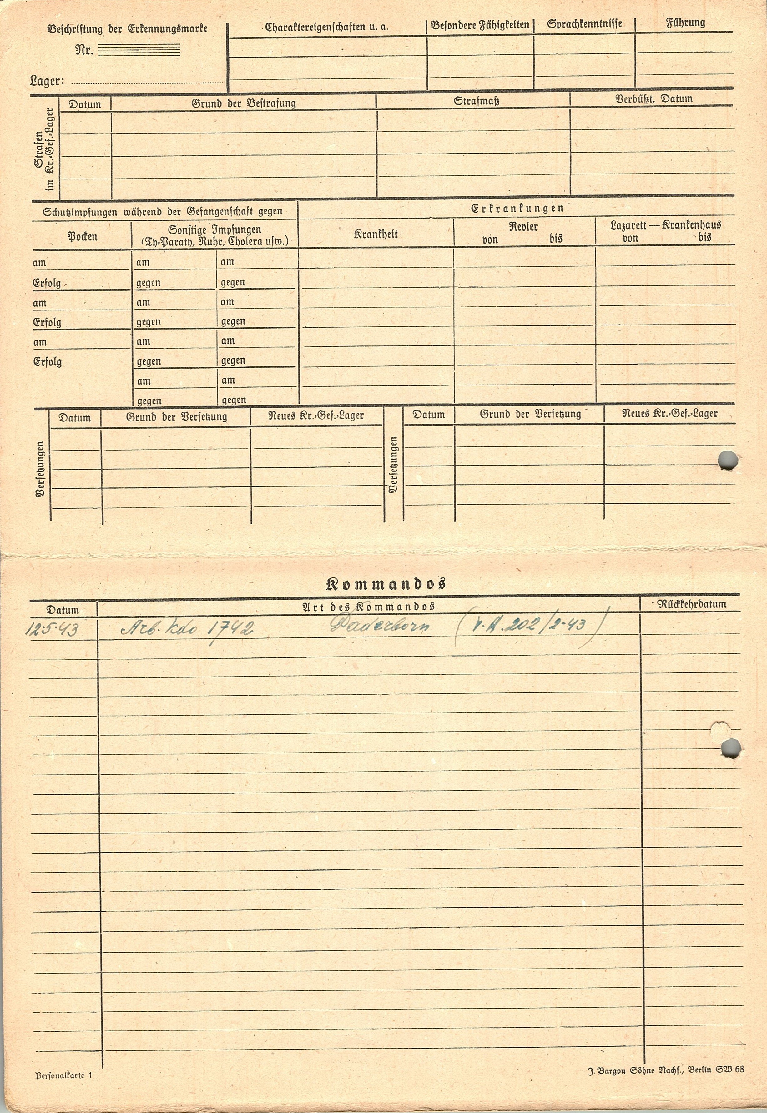 Военнопленные, трофейные карточки. Киевская обл.