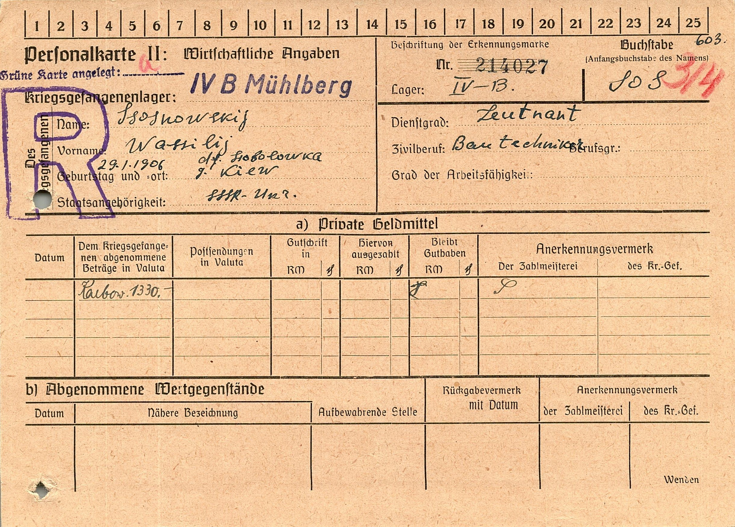 Военнопленные, трофейные карточки. Киевская обл.