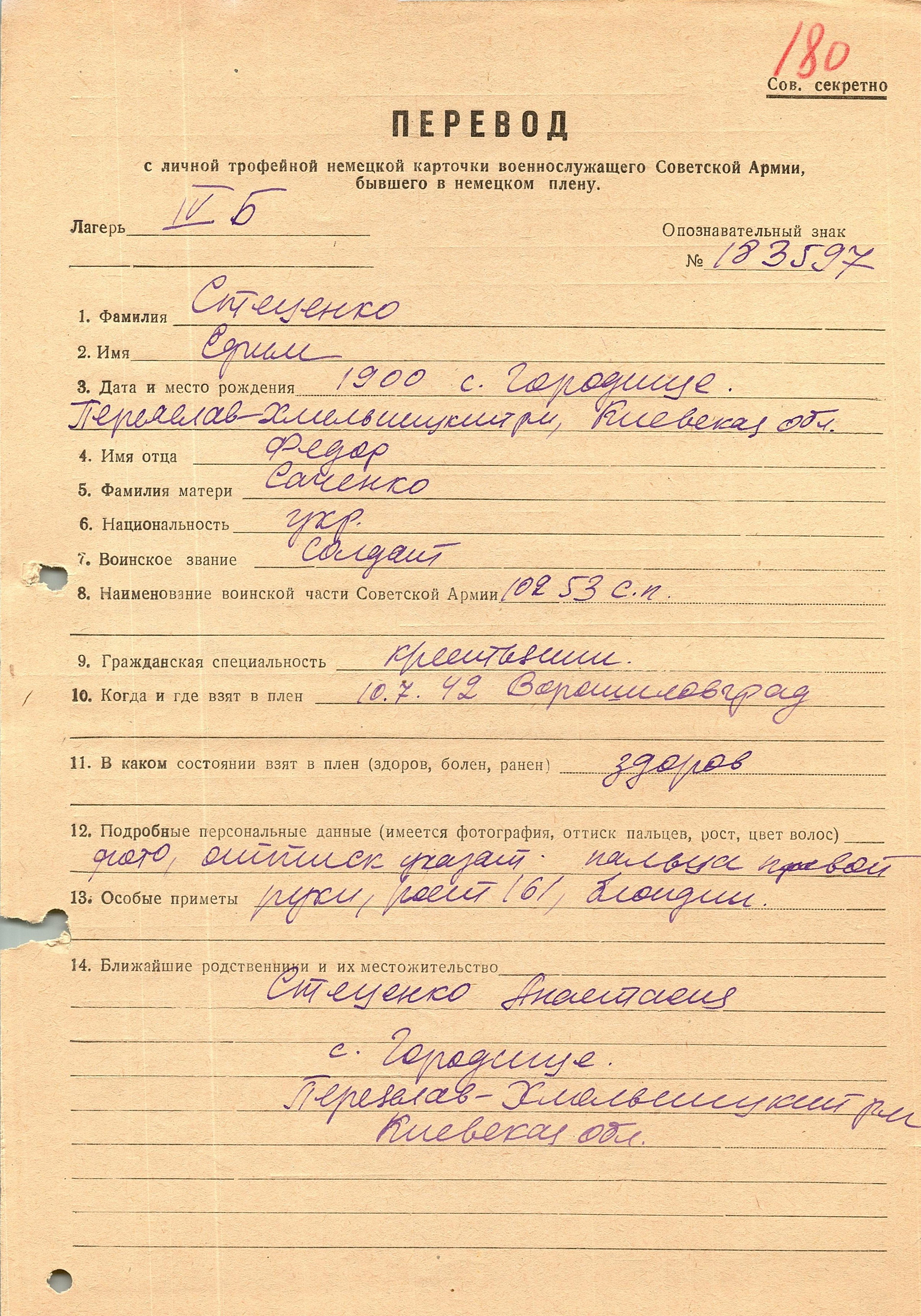 Военнопленные, трофейные карточки. Киевская обл.