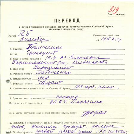 Военнопленные, трофейные карточки. Киевская обл.