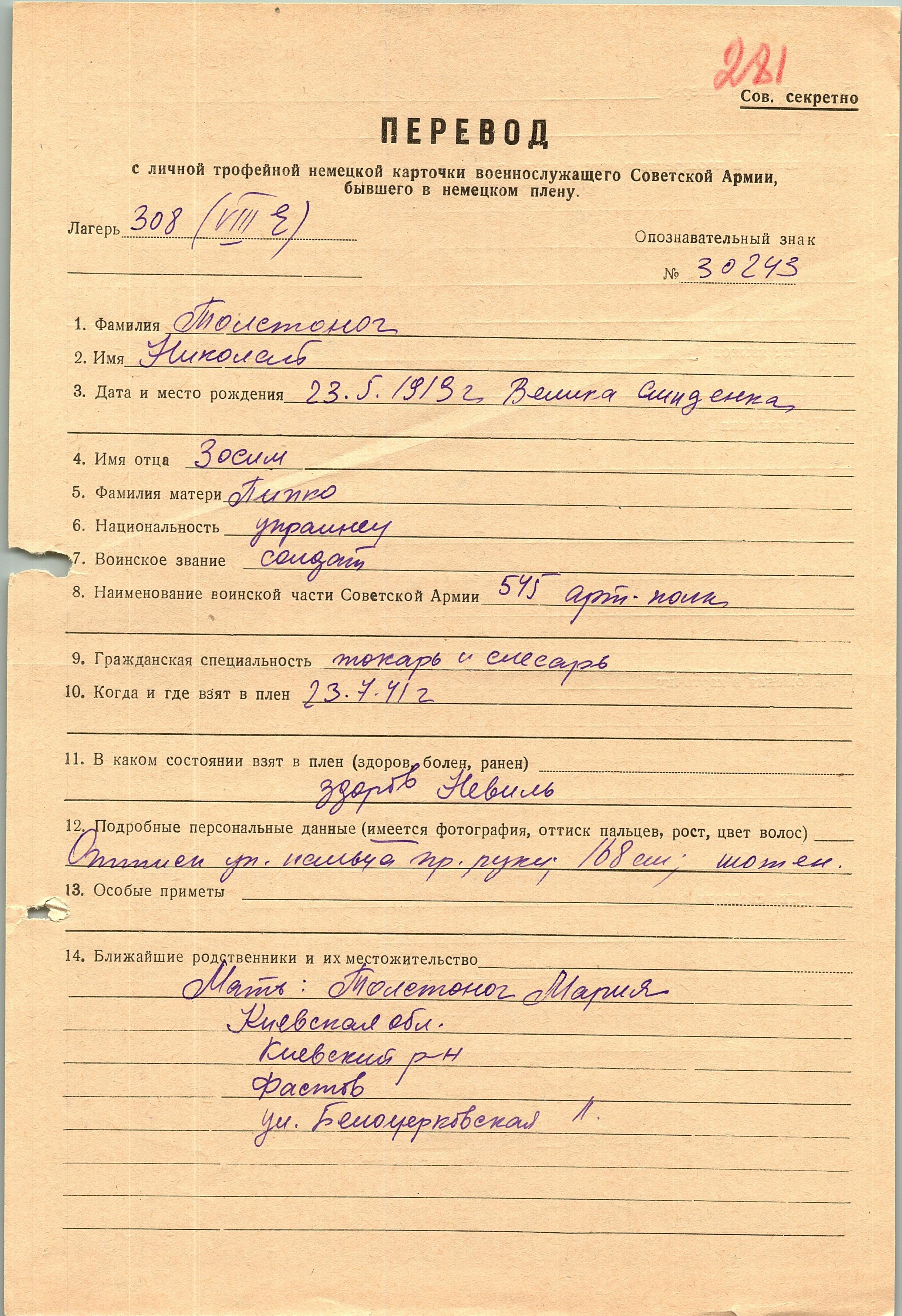 Военнопленные, трофейные карточки. Киевская обл.