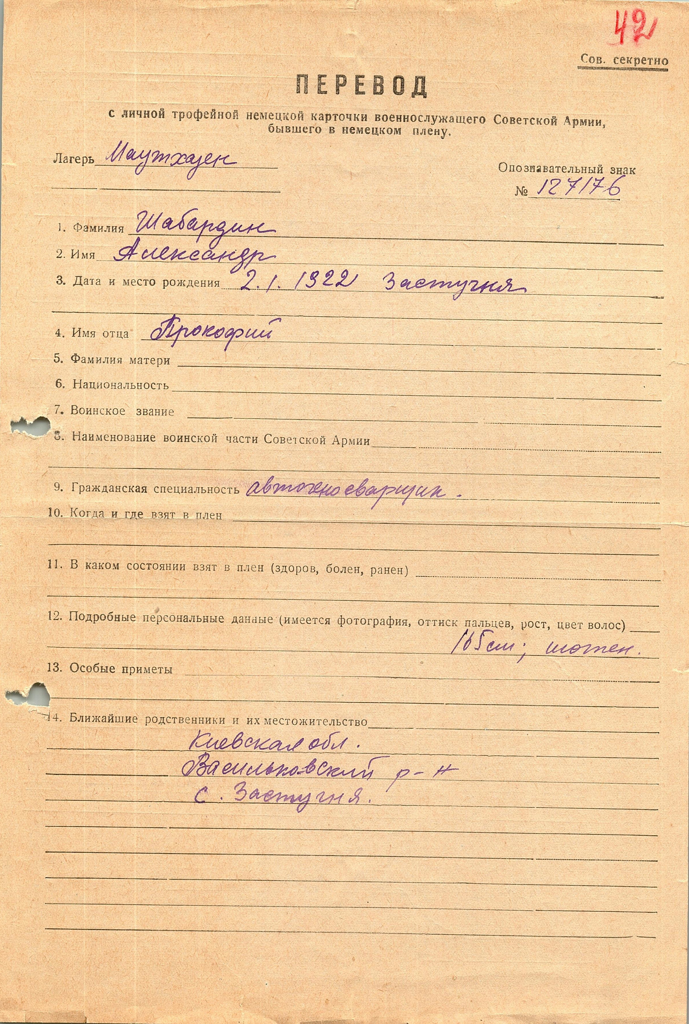 Военнопленные, трофейные карточки. Киевская обл.