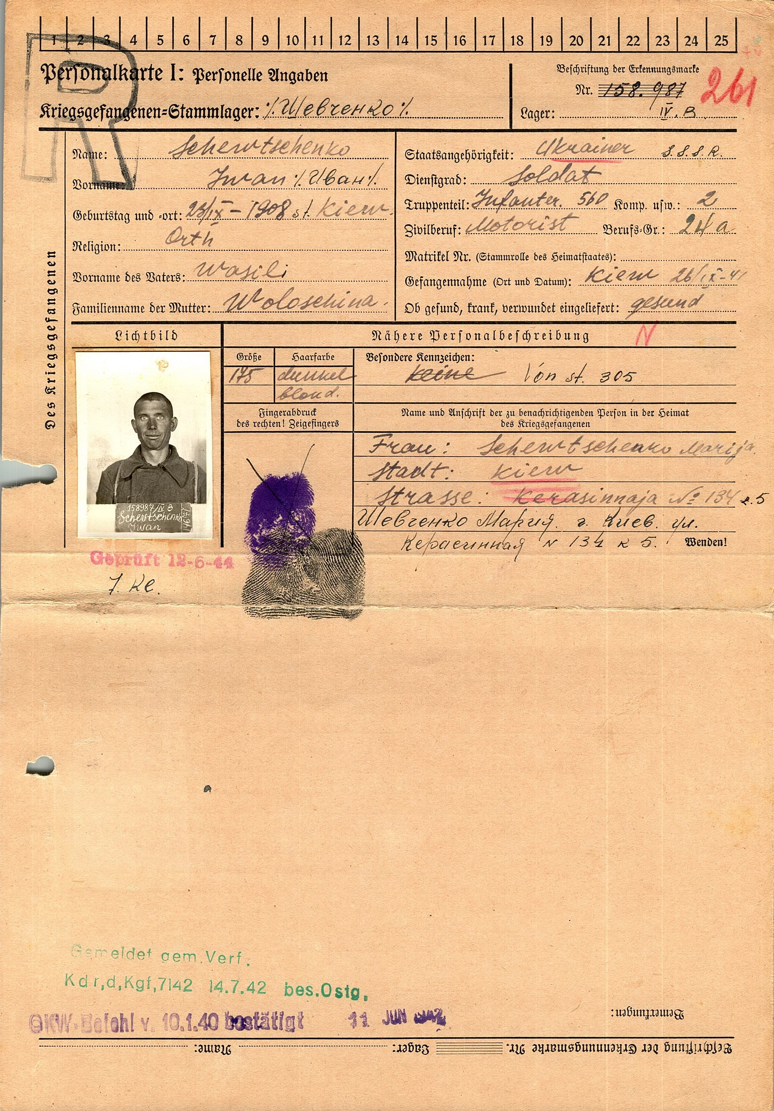 Военнопленные, трофейные карточки. Киевская обл.