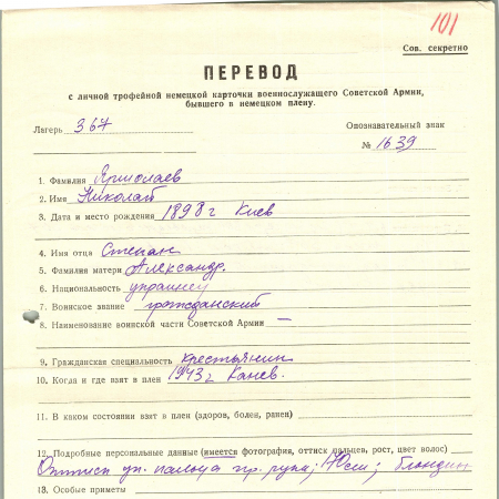 Военнопленные, трофейные карточки. Киевская обл.
