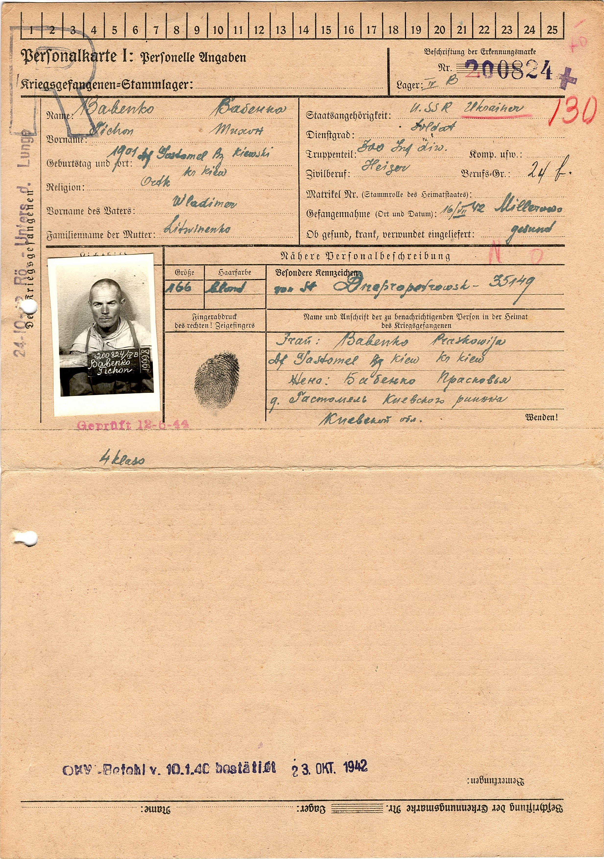 Военнопленные, трофейные карточки. Киевская обл.