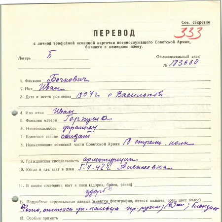 Военнопленные, трофейные карточки. Киевская обл.