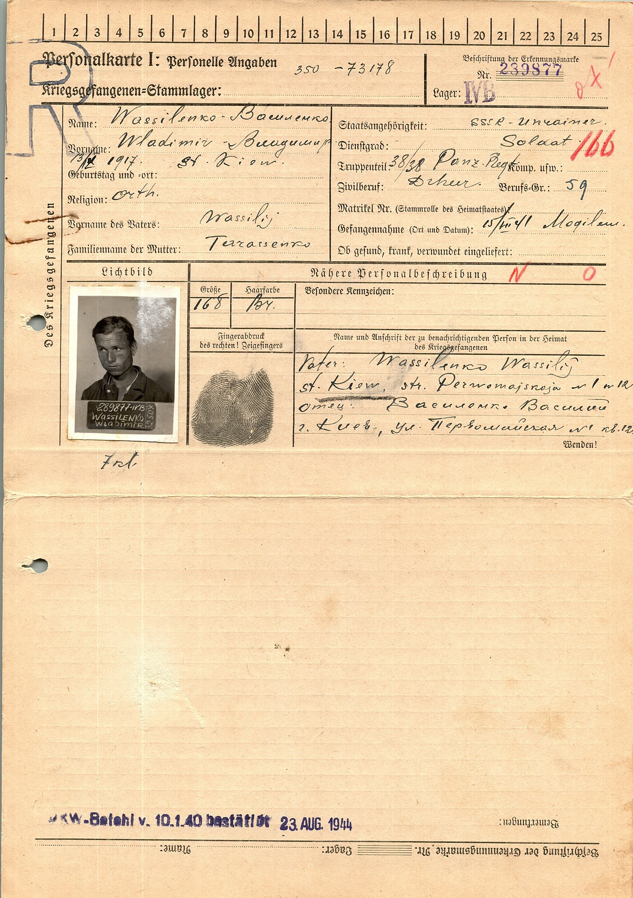 Военнопленные, трофейные карточки. Киевская обл.