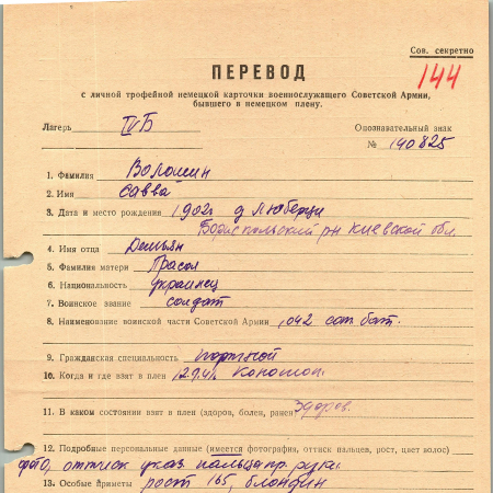 Военнопленные, трофейные карточки. Киевская обл.