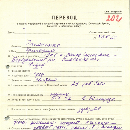 Военнопленные, трофейные карточки. Киевская обл.