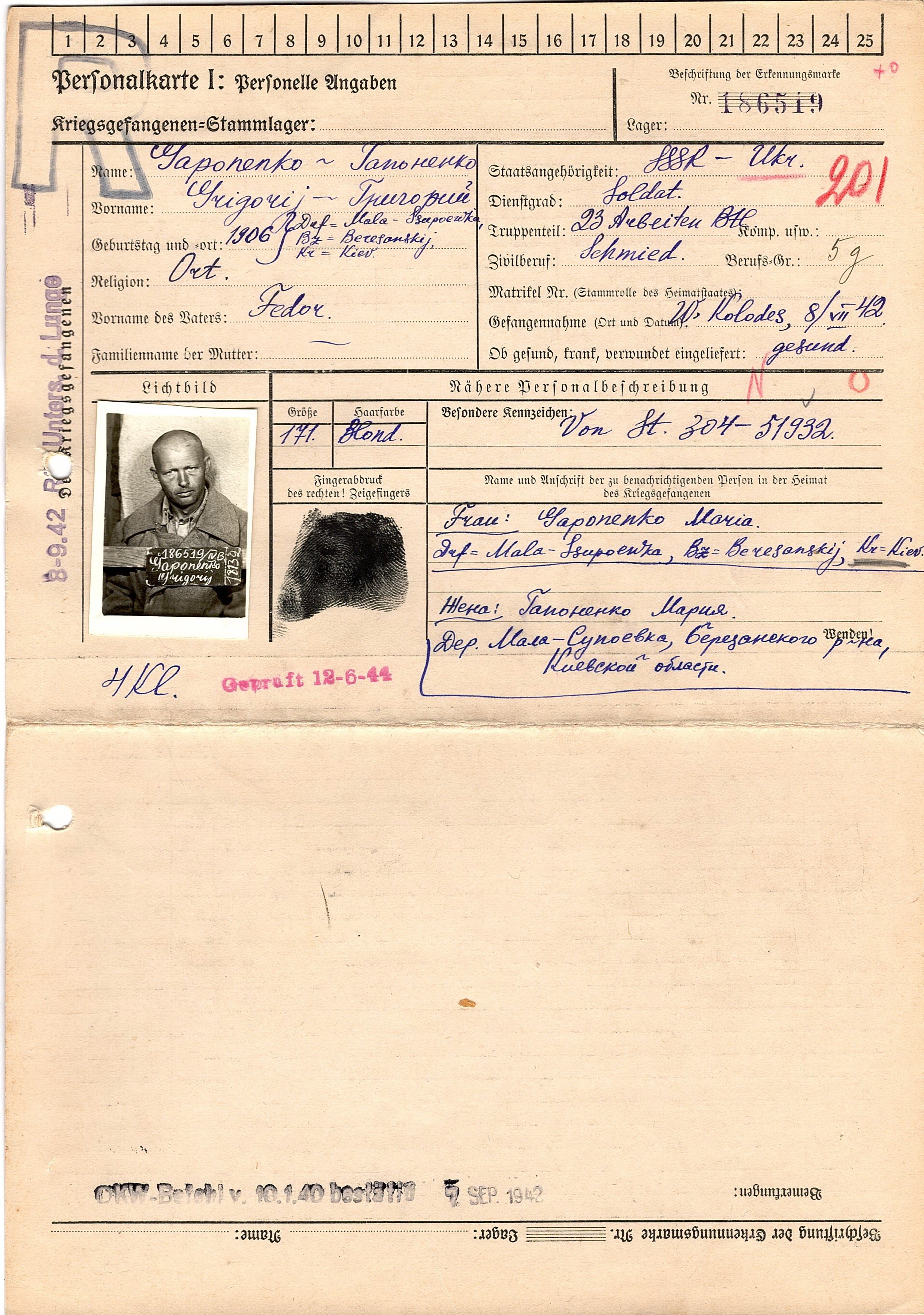 Военнопленные, трофейные карточки. Киевская обл.