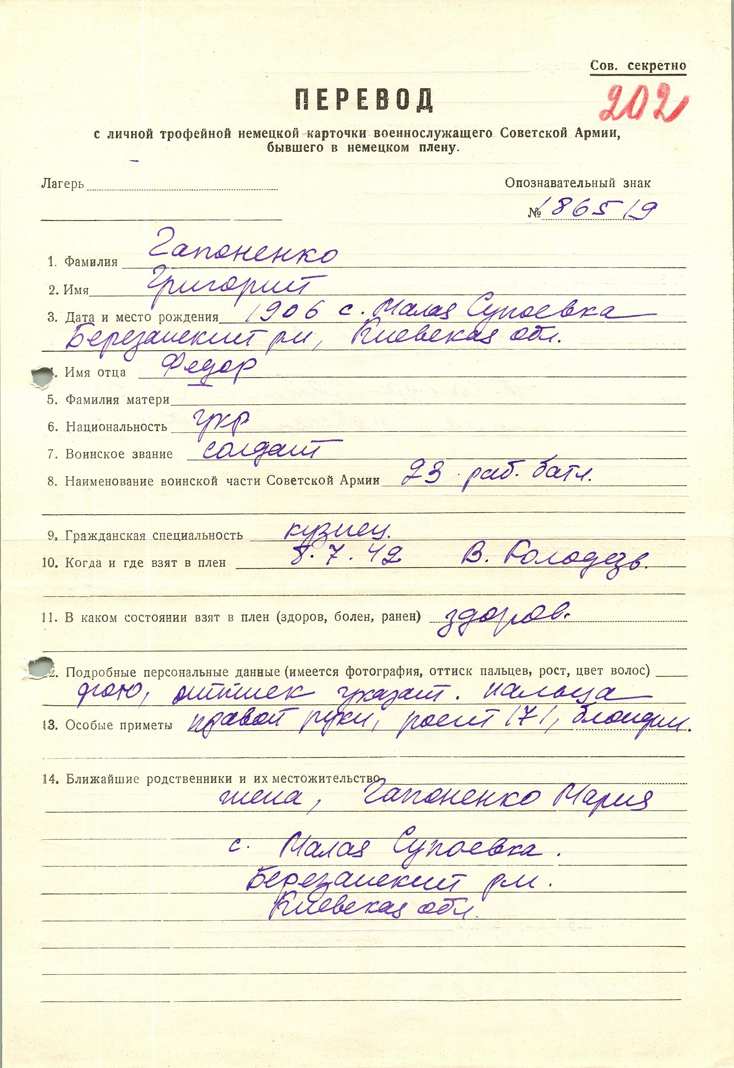 Военнопленные, трофейные карточки. Киевская обл.