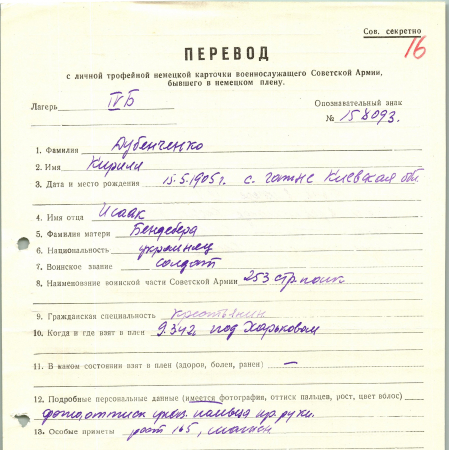 Военнопленные, трофейные карточки. Киевская обл.