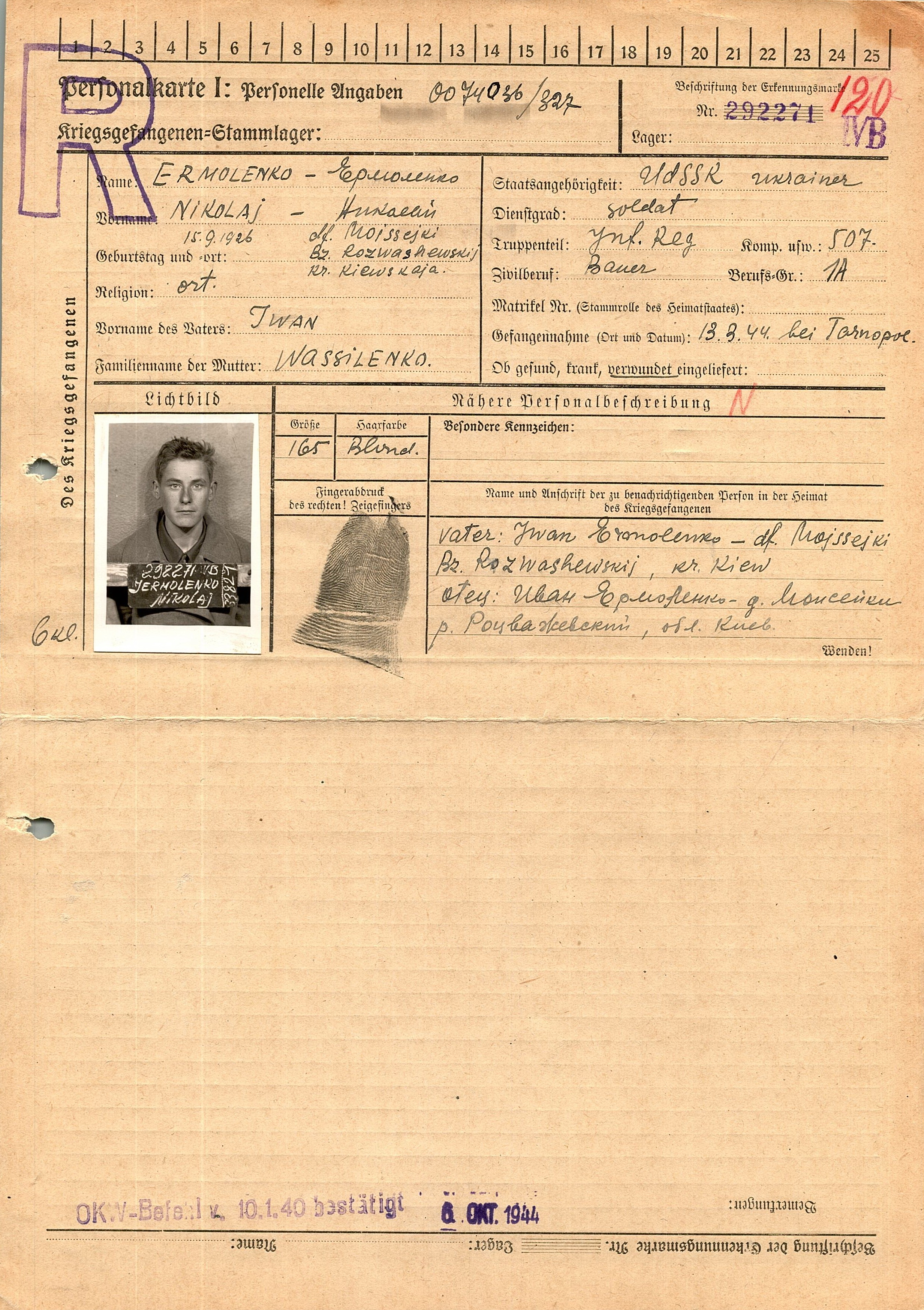 Военнопленные, трофейные карточки. Киевская обл.