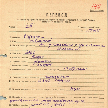 Военнопленные, трофейные карточки. Киевская обл.