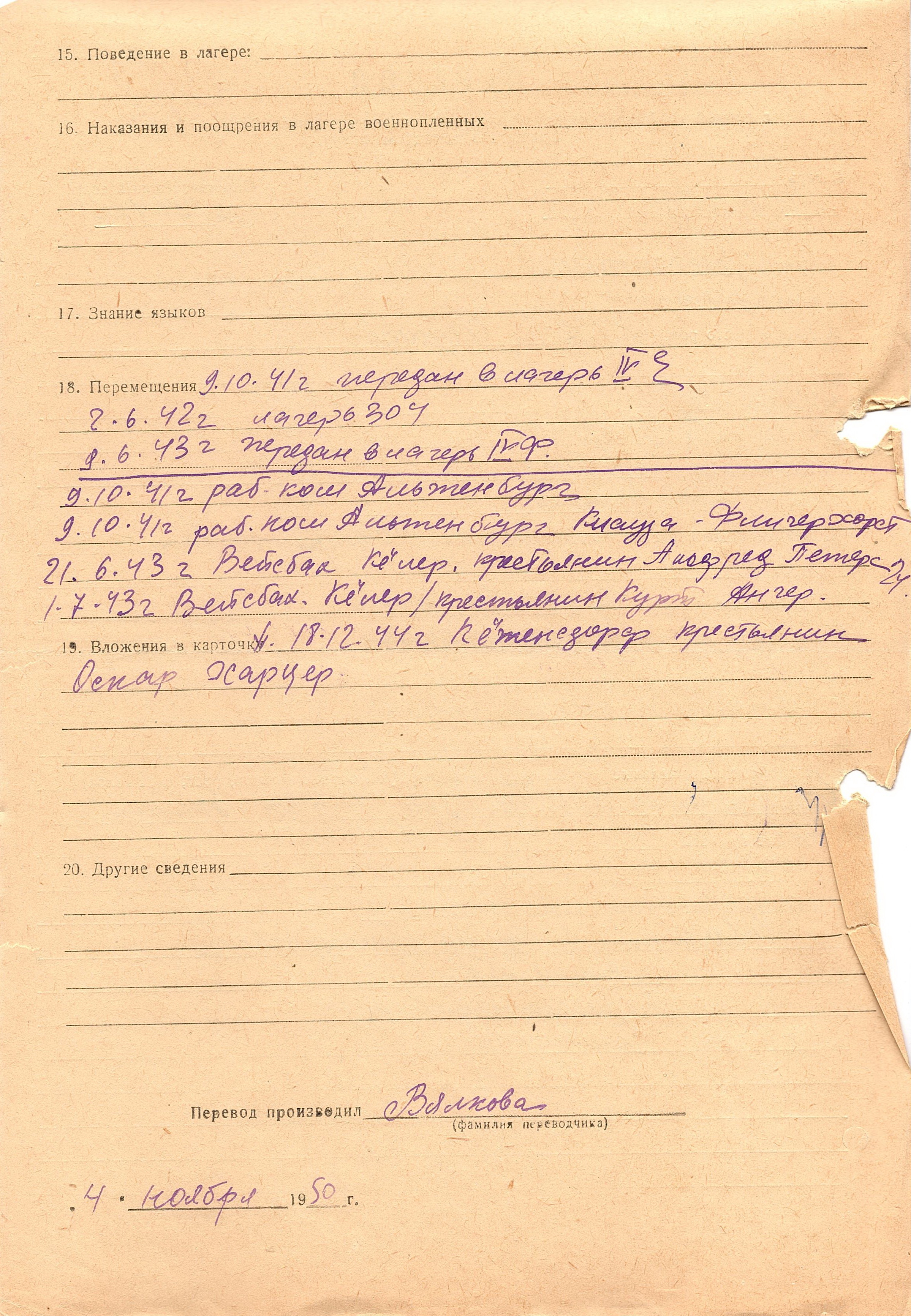 Военнопленные, трофейные карточки. Киевская обл.