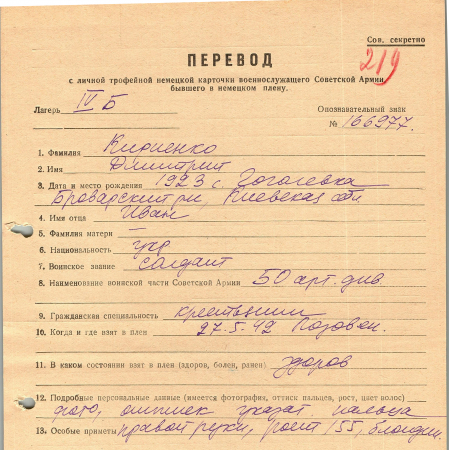 Военнопленные, трофейные карточки. Киевская обл.