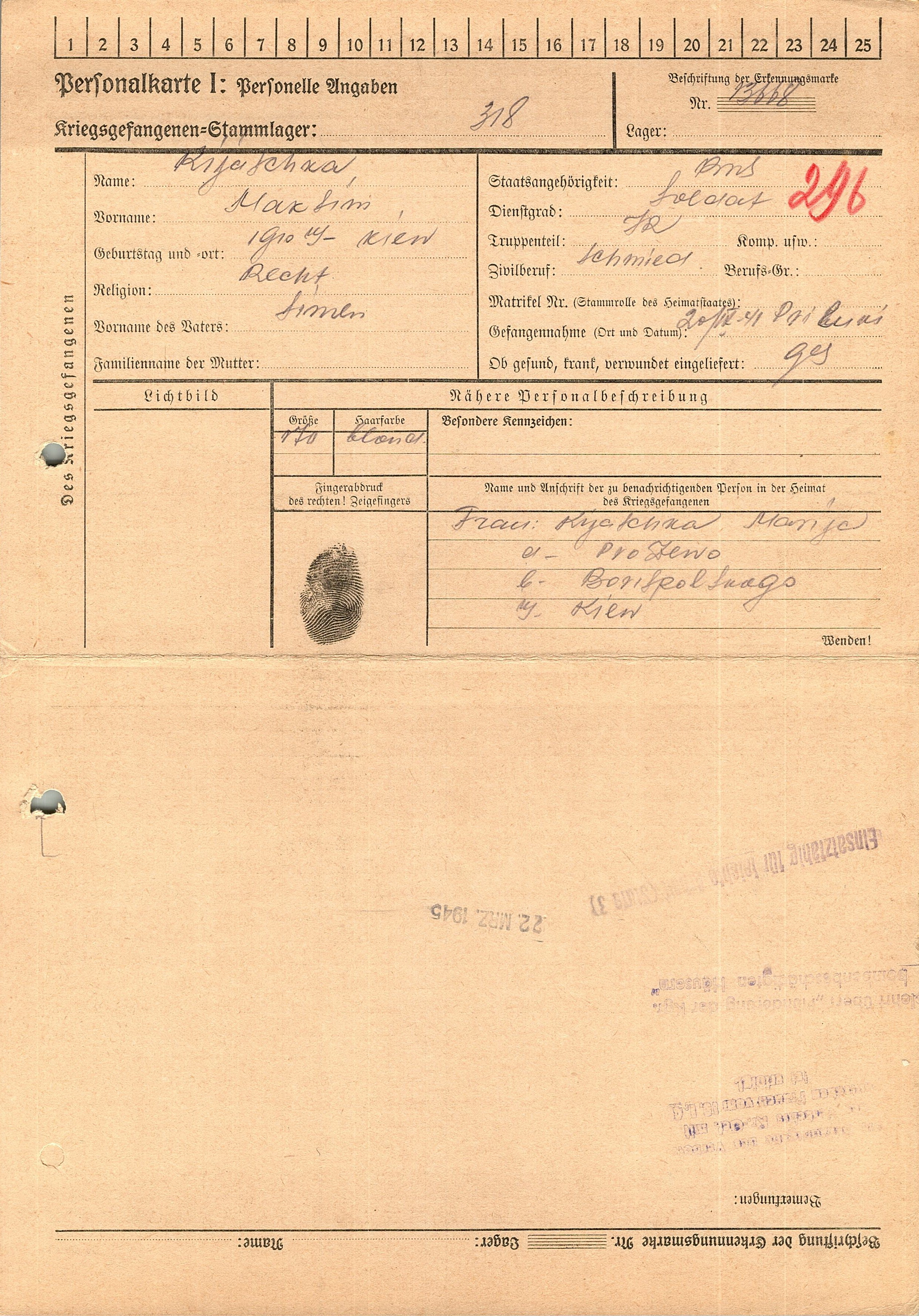Военнопленные, трофейные карточки. Киевская обл.