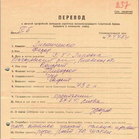 Военнопленные, трофейные карточки. Киевская обл.
