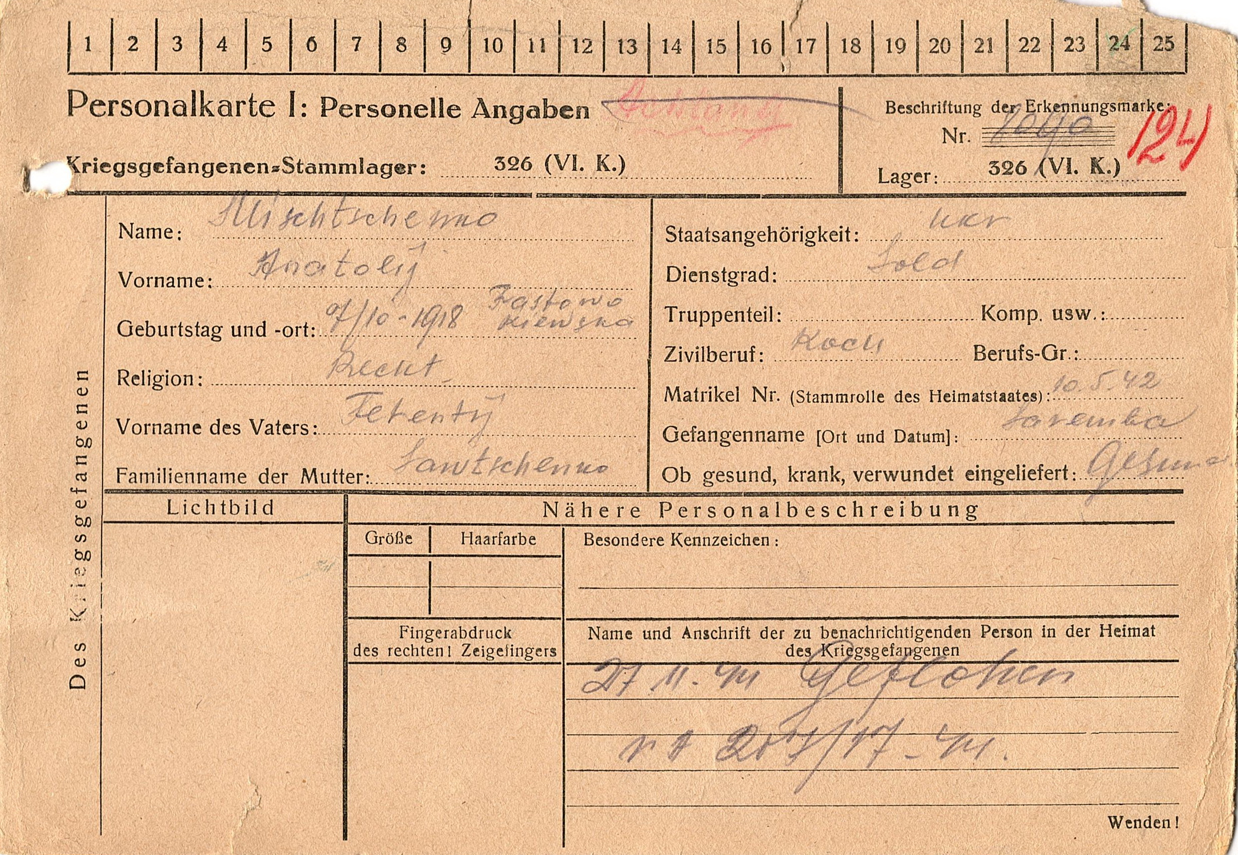 Военнопленные, трофейные карточки. Киевская обл.
