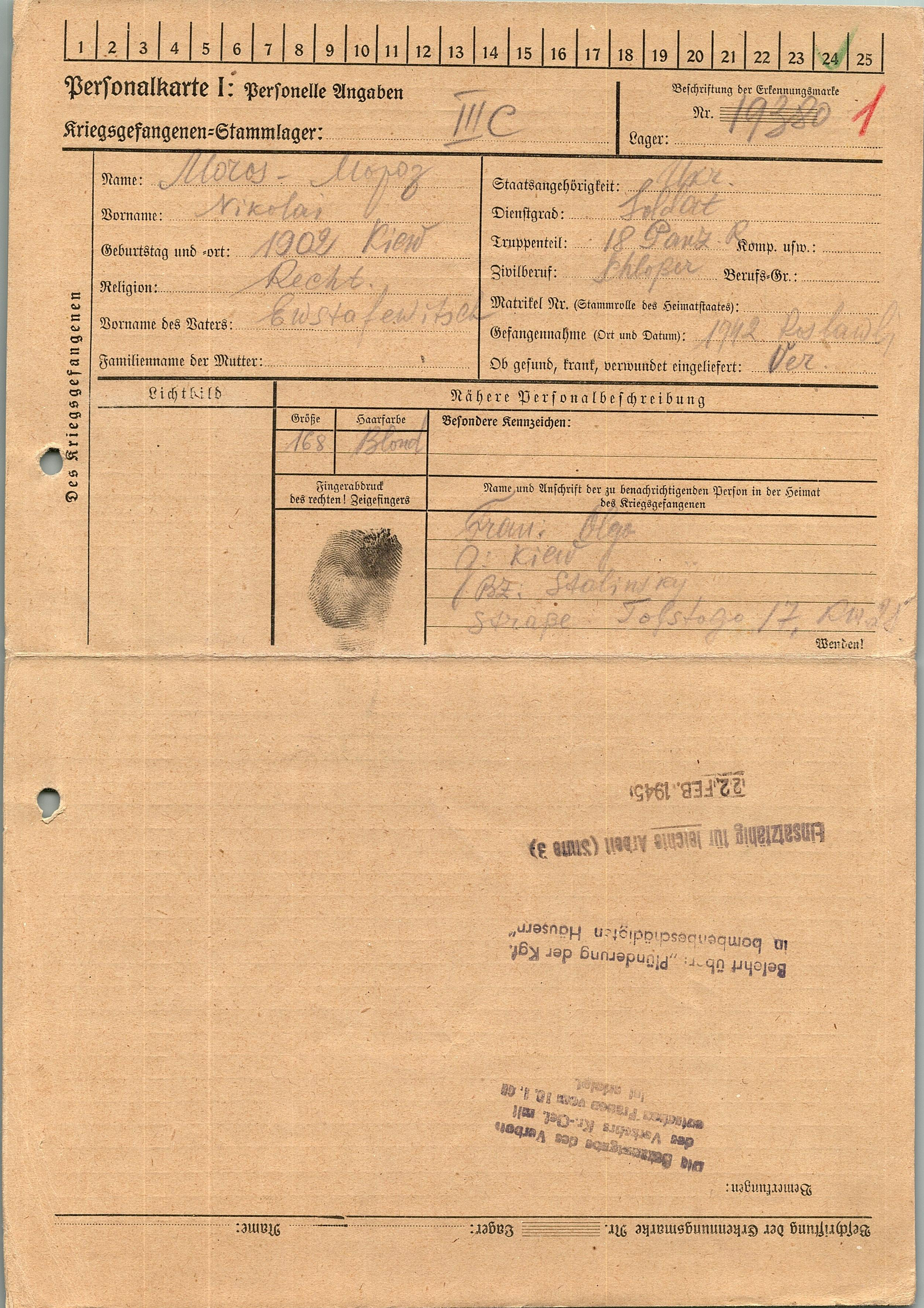 Военнопленные, трофейные карточки. Киевская обл.