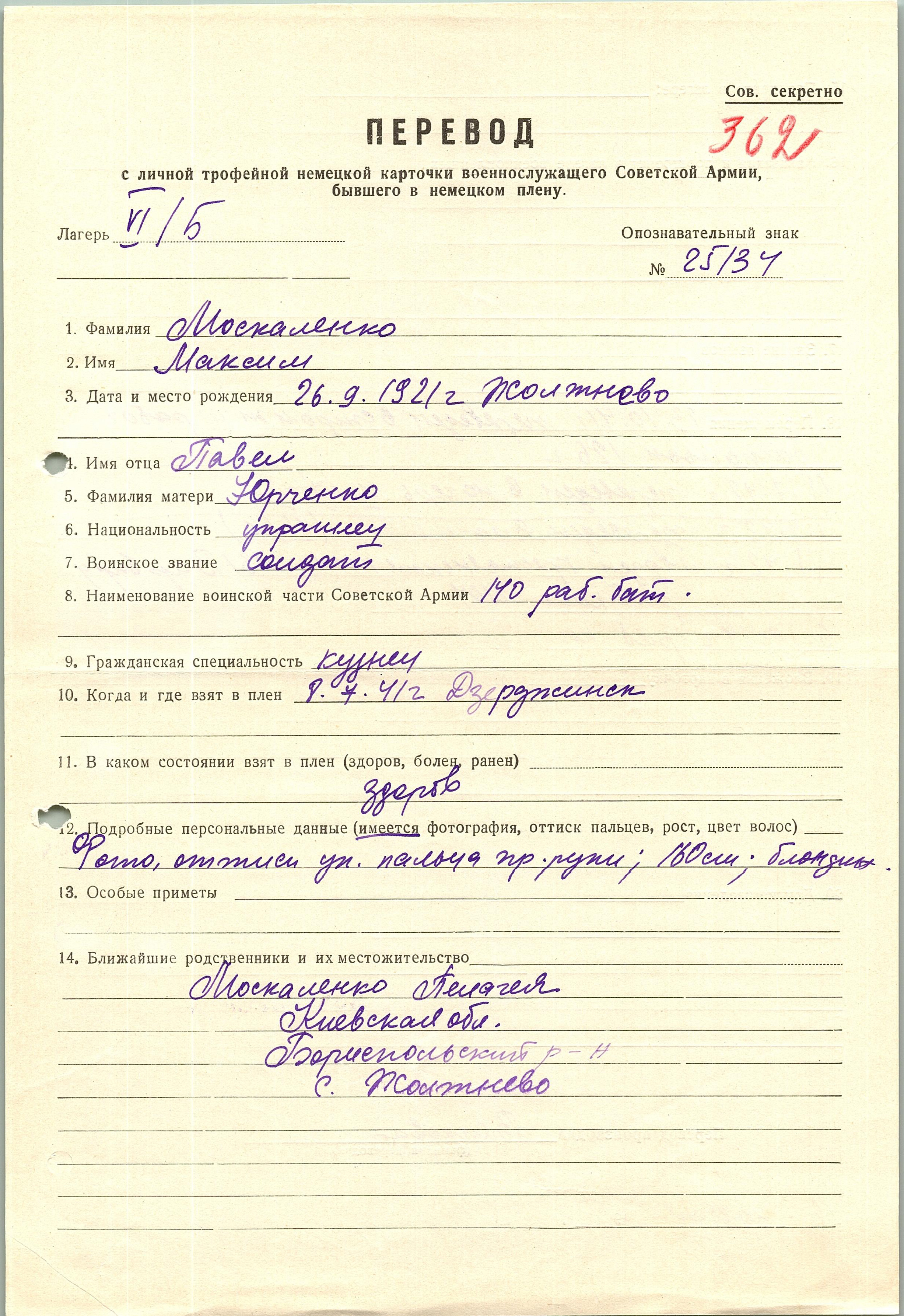 Военнопленные, трофейные карточки. Киевская обл.