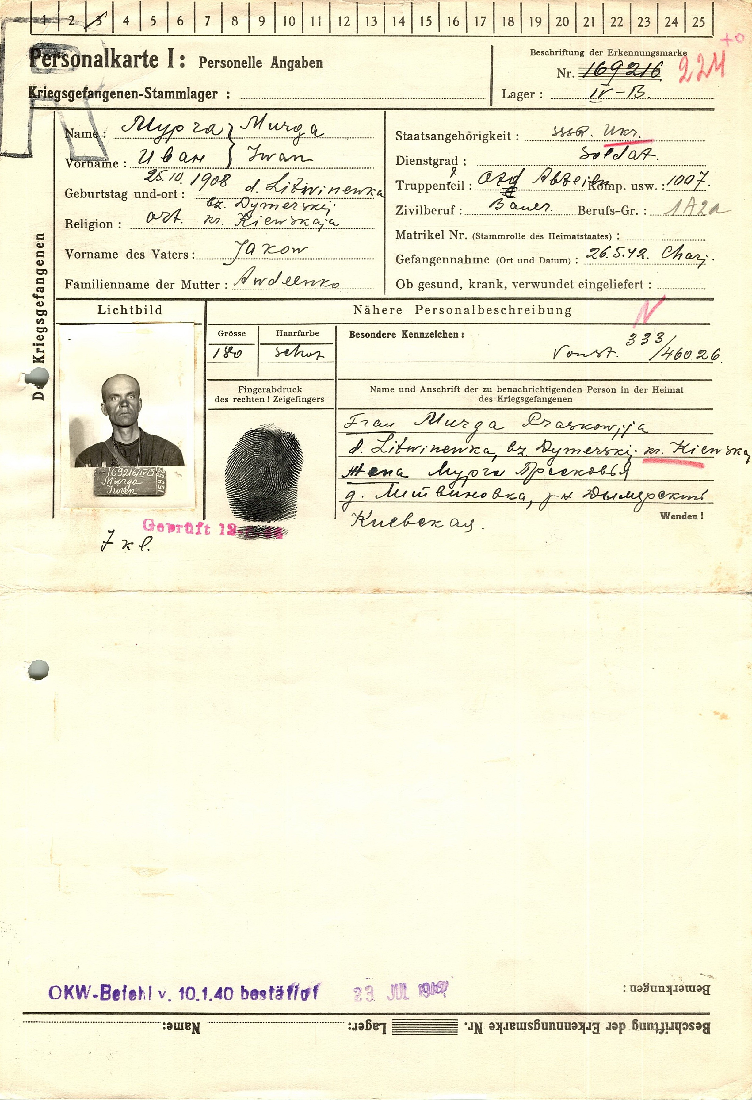 Военнопленные, трофейные карточки. Киевская обл.