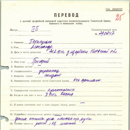 Военнопленные, трофейные карточки. Киевская обл.