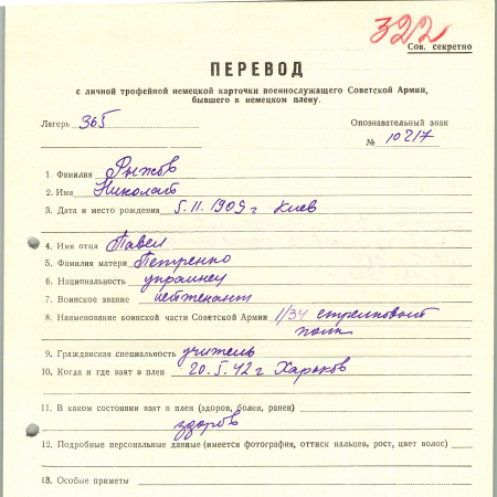 Военнопленные, трофейные карточки. Киевская обл.