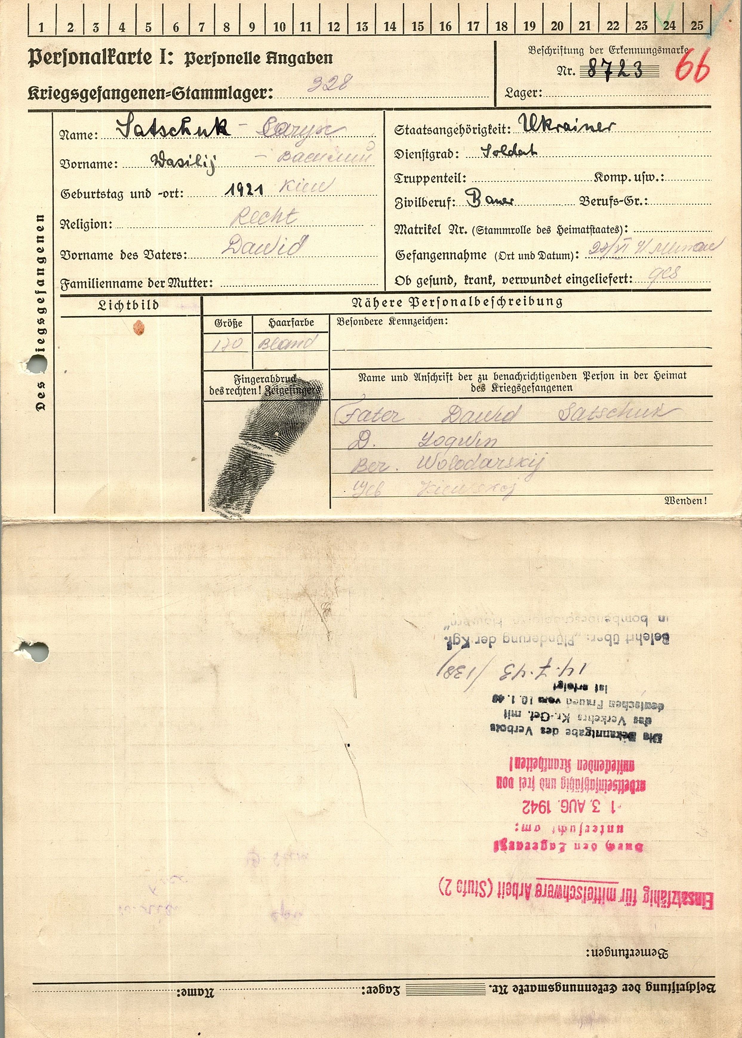 Военнопленные, трофейные карточки. Киевская обл.